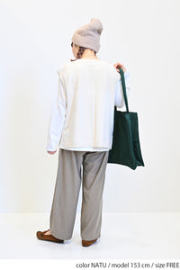 シンプルにデニムのボトムスとの合わせや、ナチュラルなスカートとも相性良し。