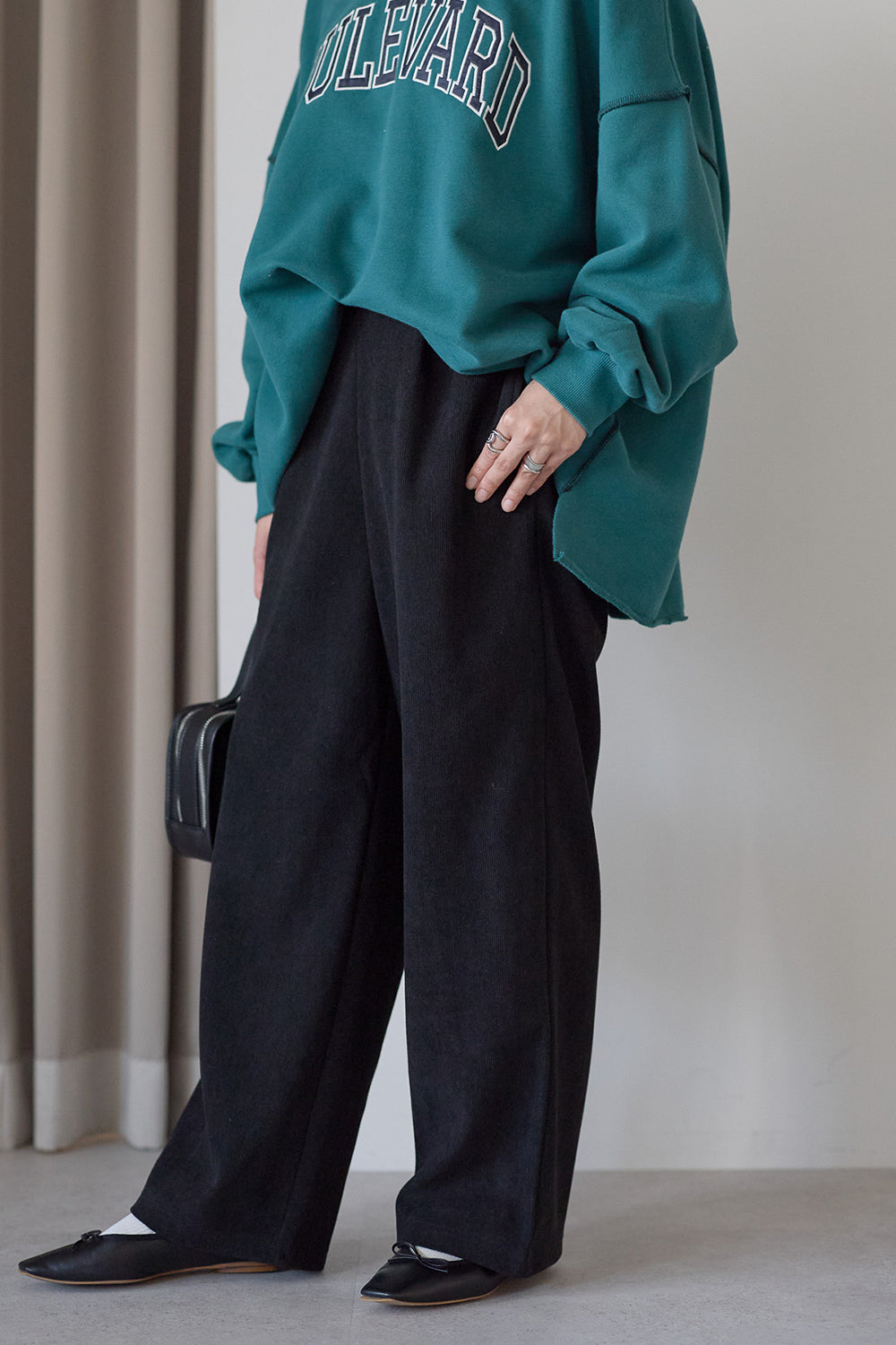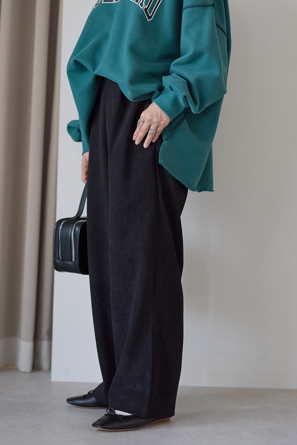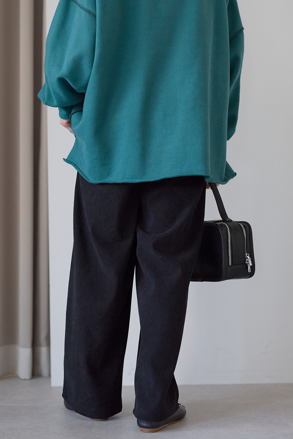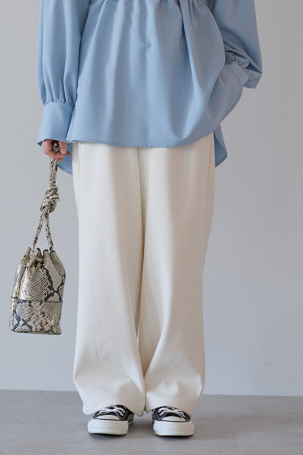 表面はコーデュロイ、裏面にふんわりとしたシャギー素材を使用した暖かワイドパンツ。
