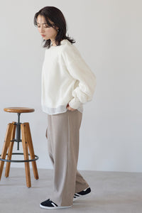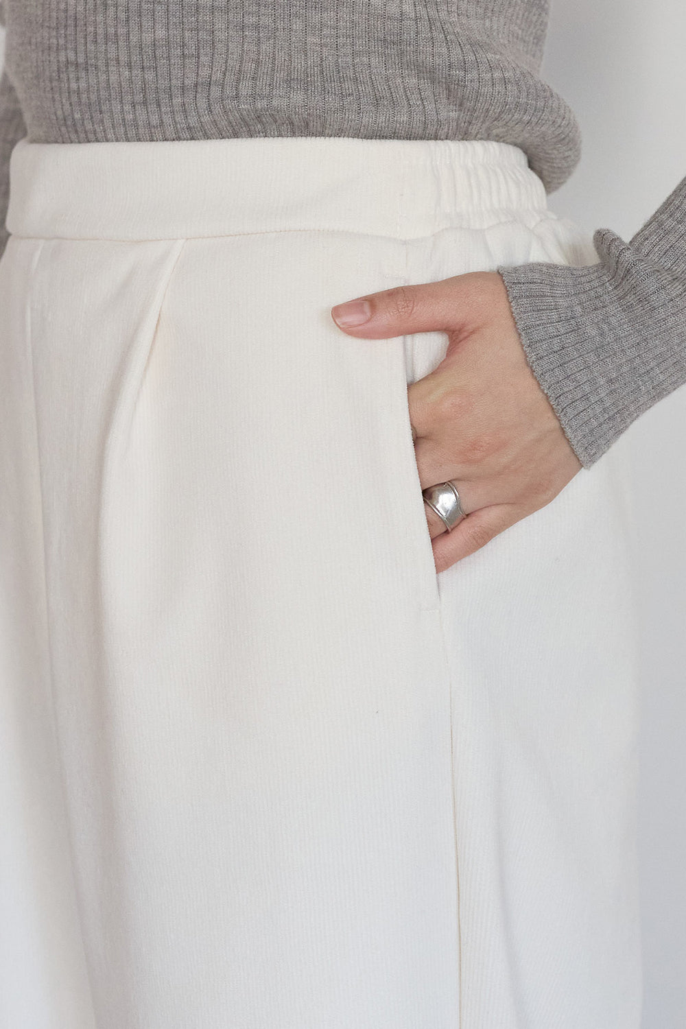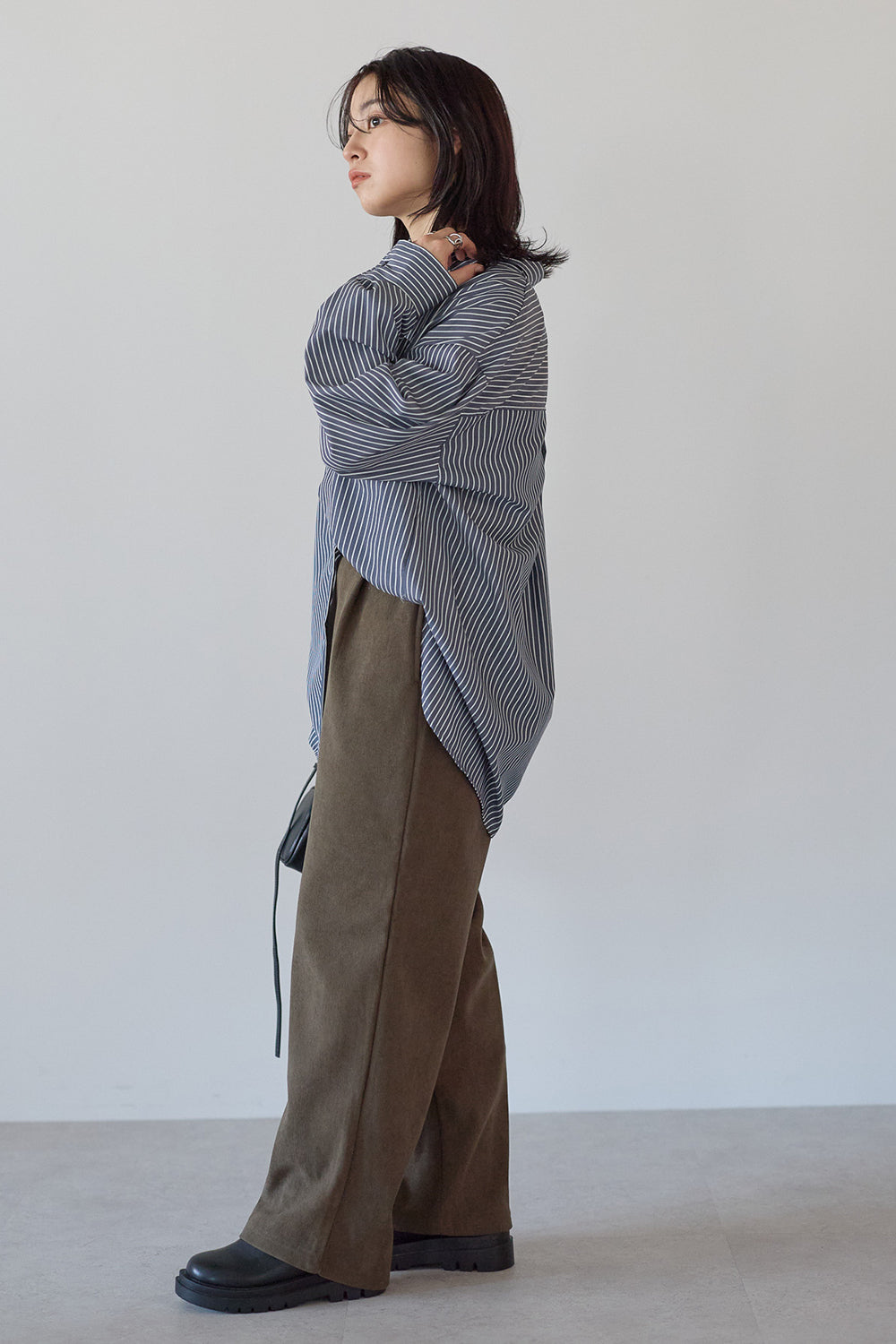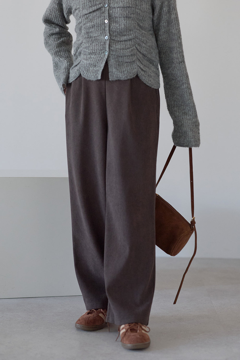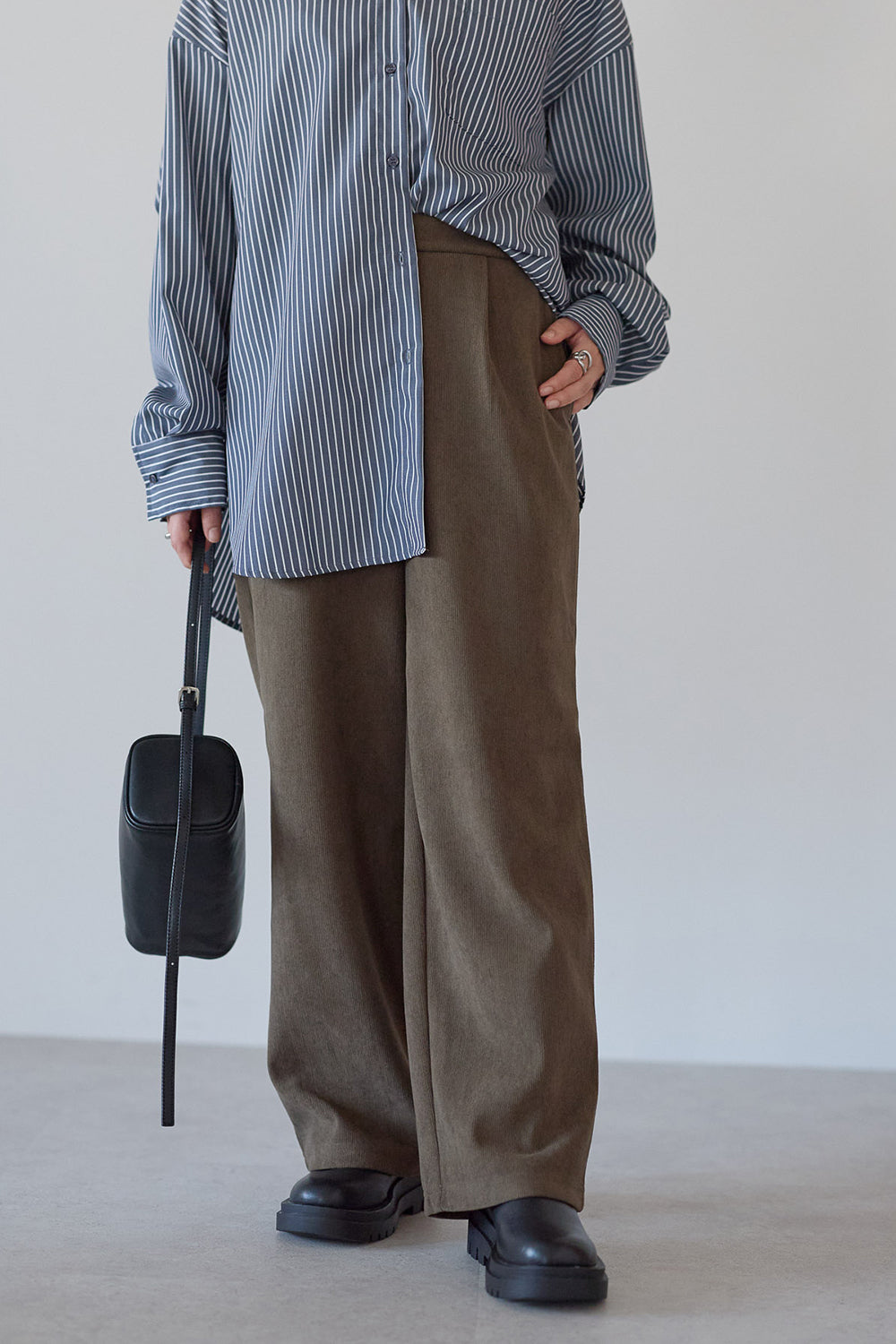 表面はコーデュロイ、裏面にふんわりとしたシャギー素材を使用した暖かワイドパンツ。