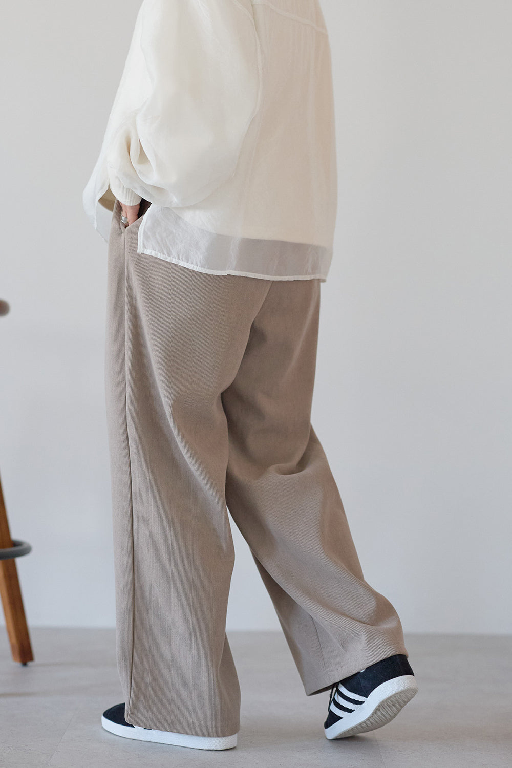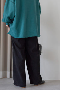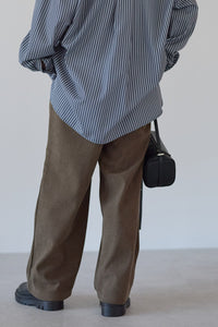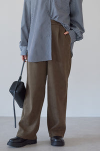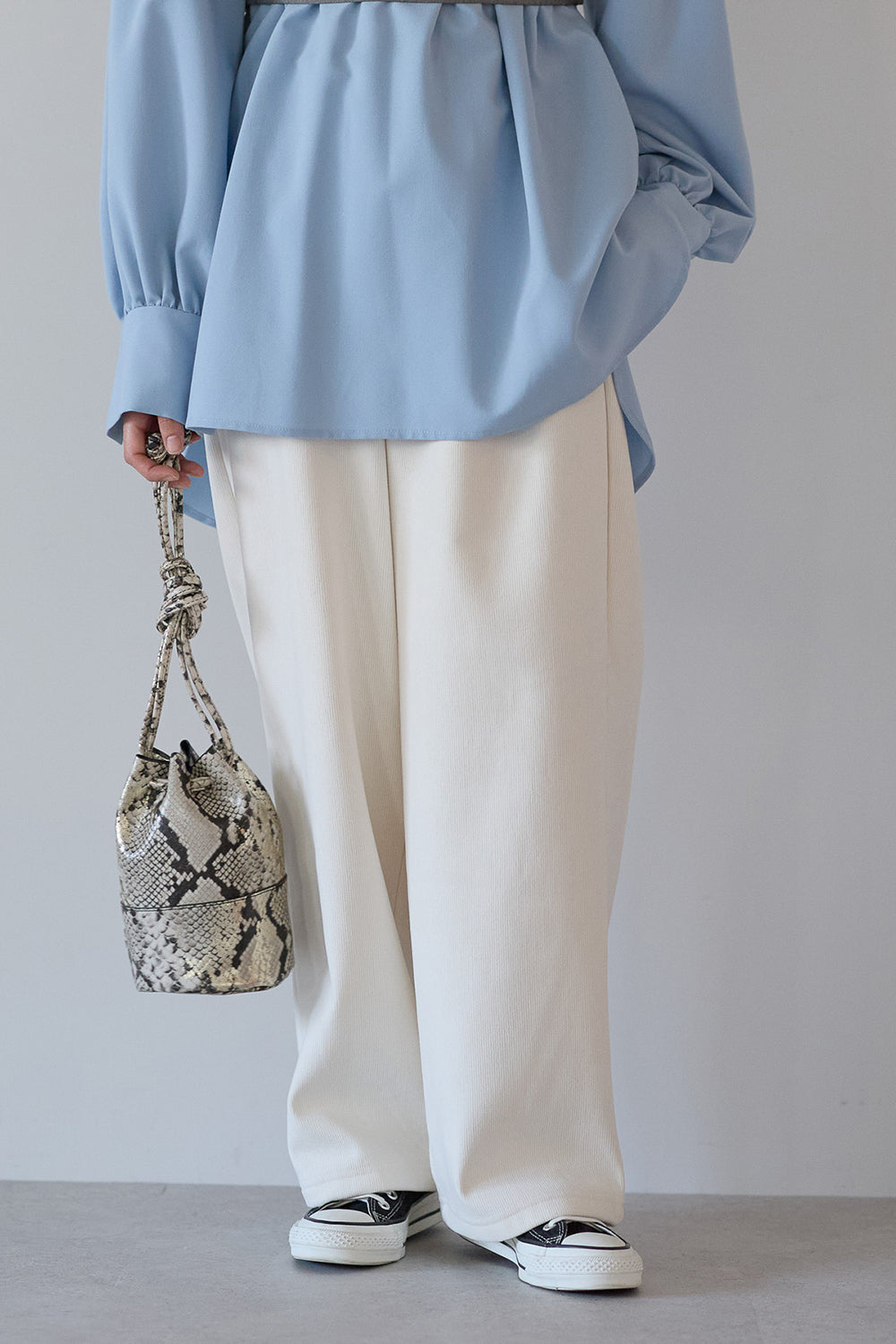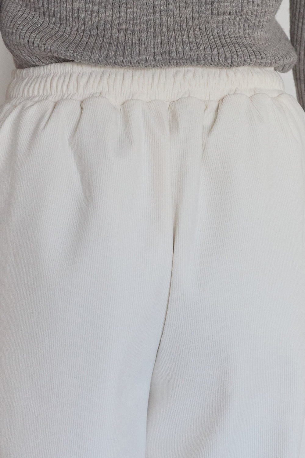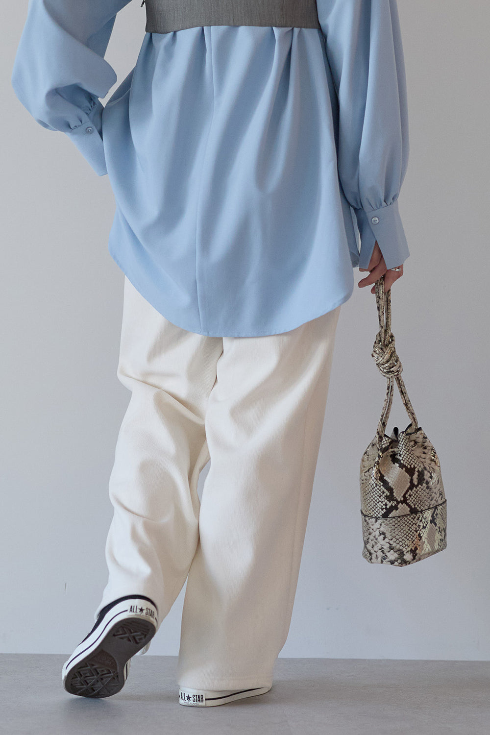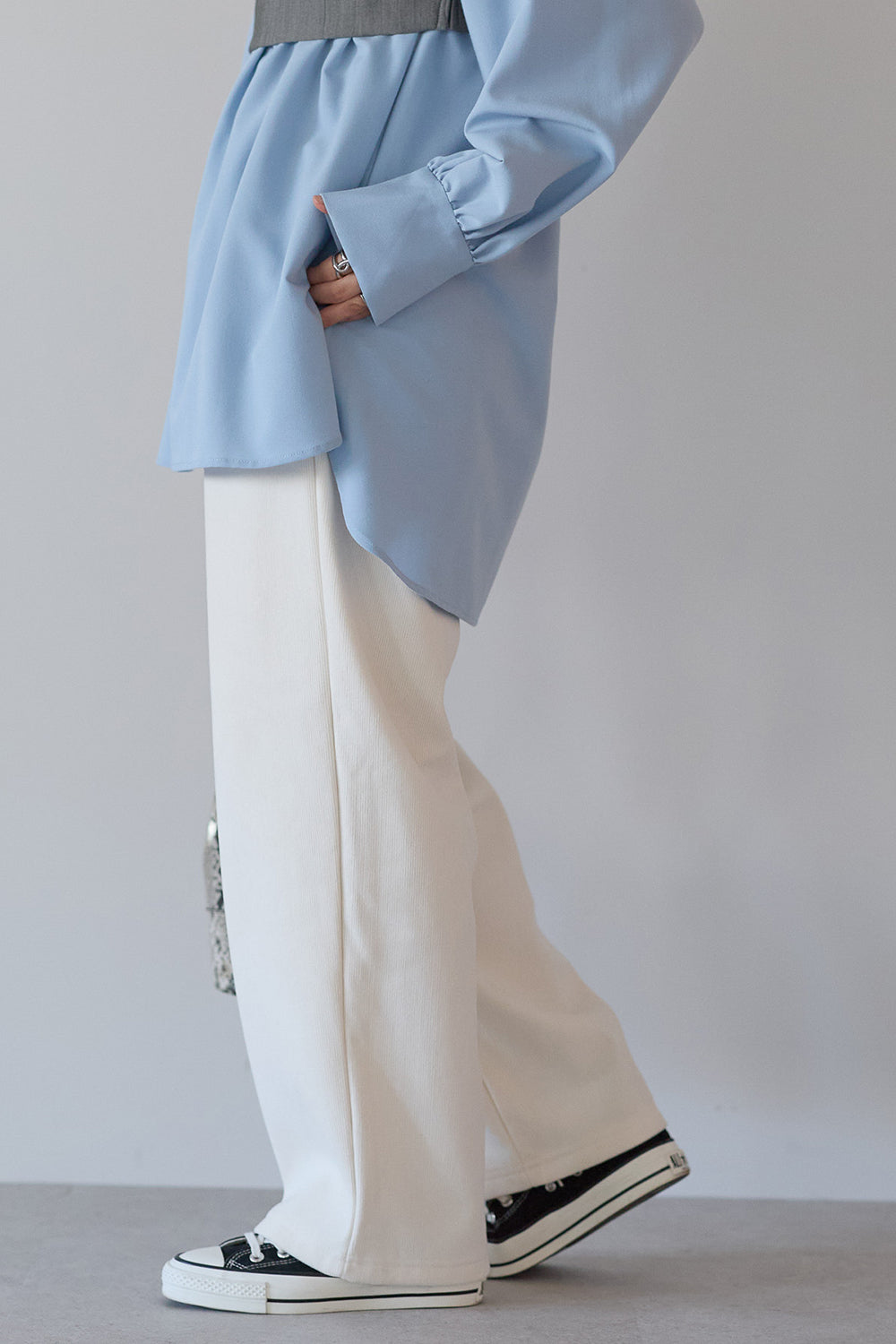 表面はコーデュロイ、裏面にふんわりとしたシャギー素材を使用した暖かワイドパンツ。