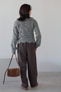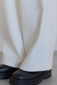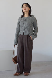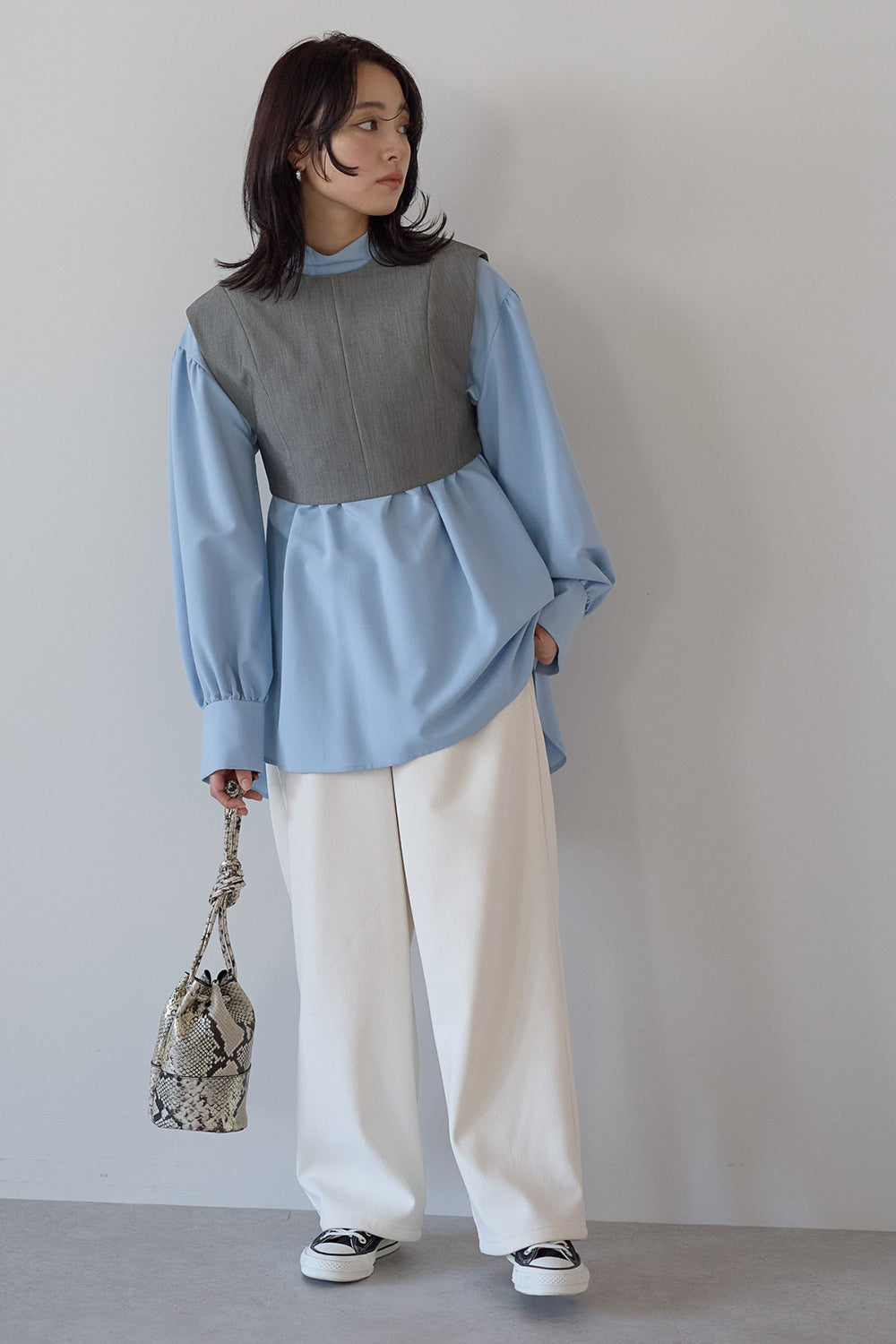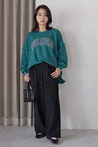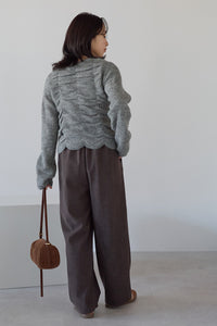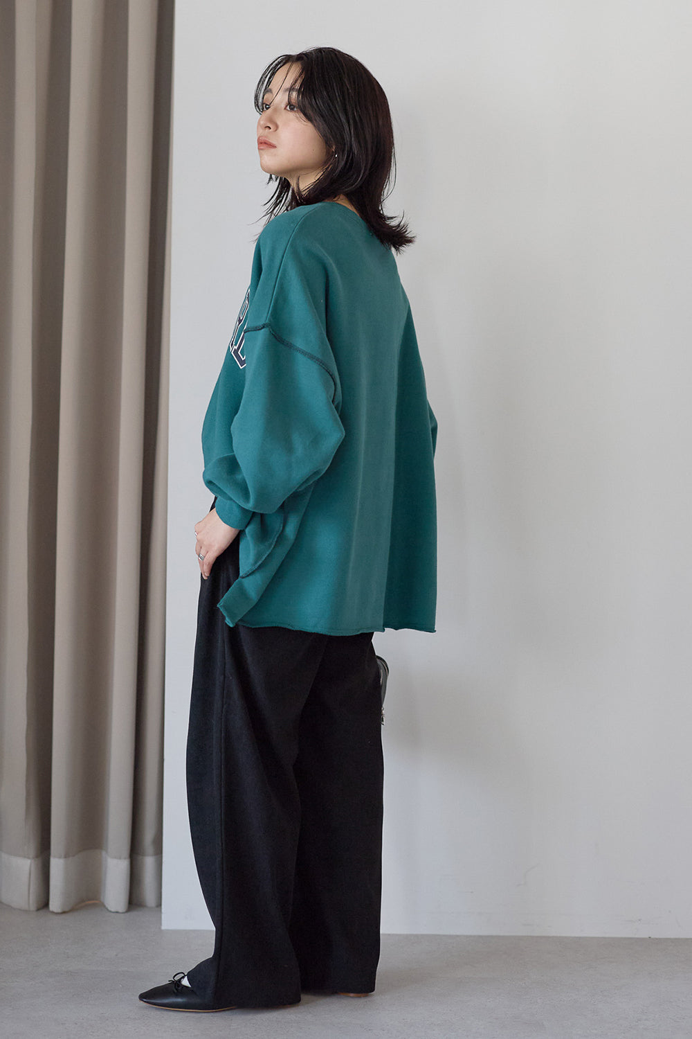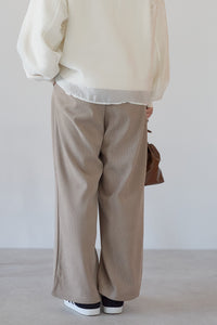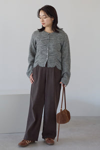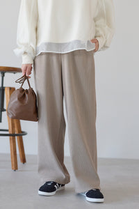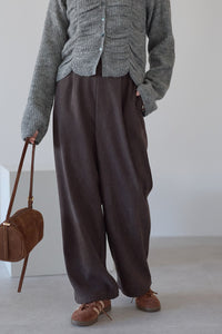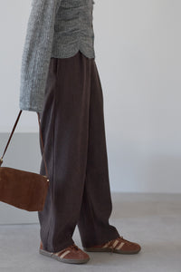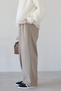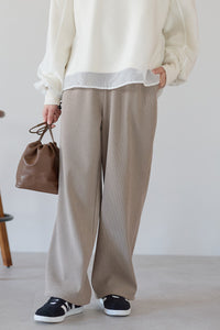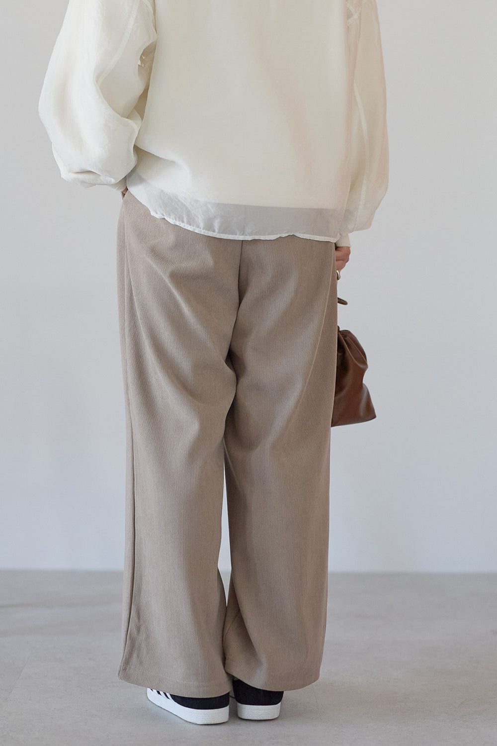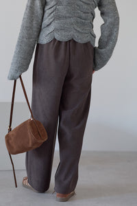 表面はコーデュロイ、裏面にふんわりとしたシャギー素材を使用した暖かワイドパンツ。
