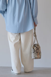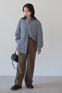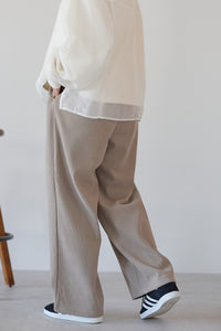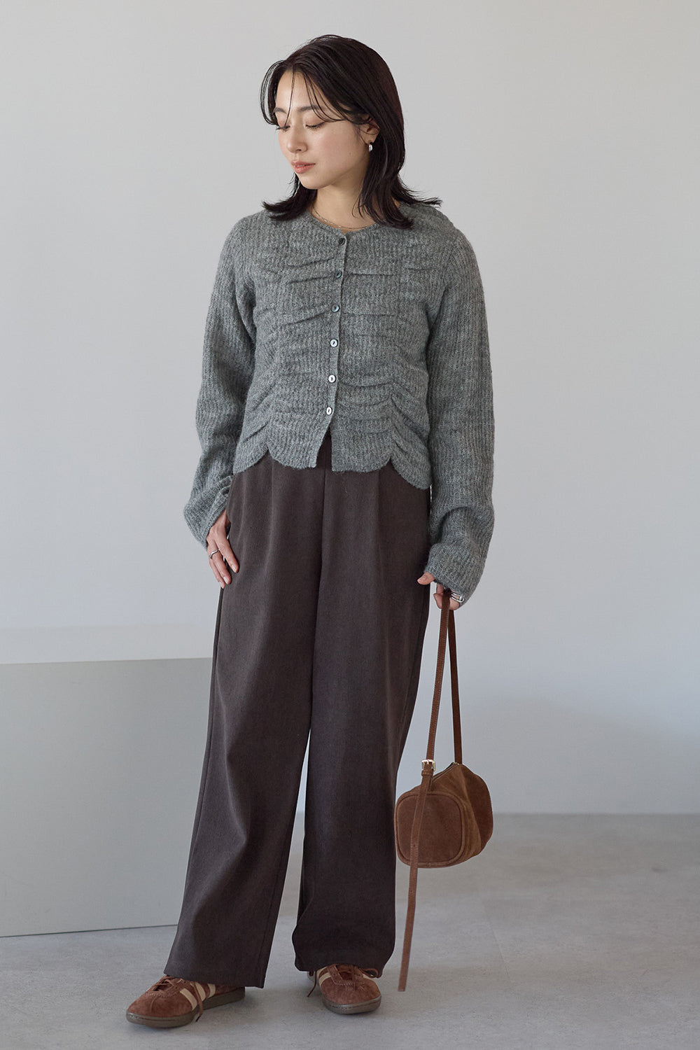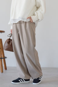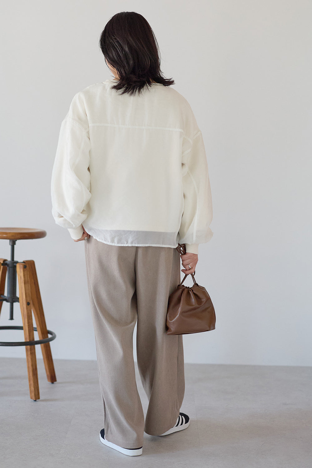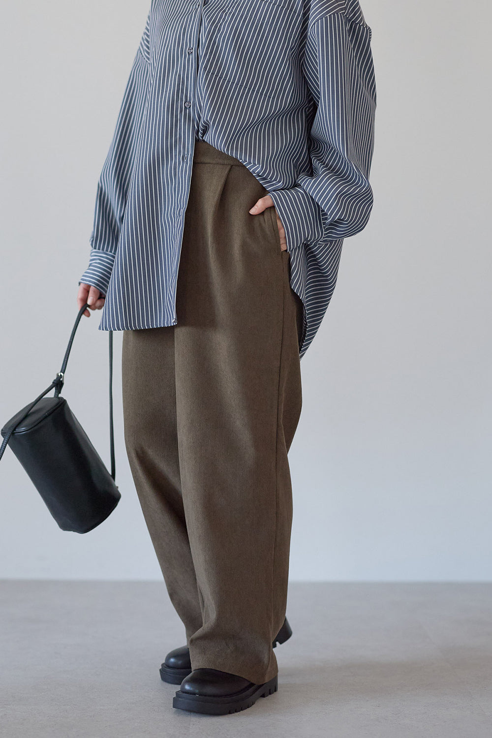 ほどよくゆとりのあるワイドシルエットが脚のラインを拾わず、リラックス感のある着こなしを演出します。