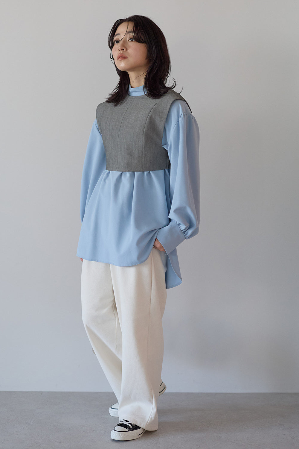 ショート丈のトップスやインスタイルでウエスト位置を見せると、すっきりとメリハリのあるスタイリングに。