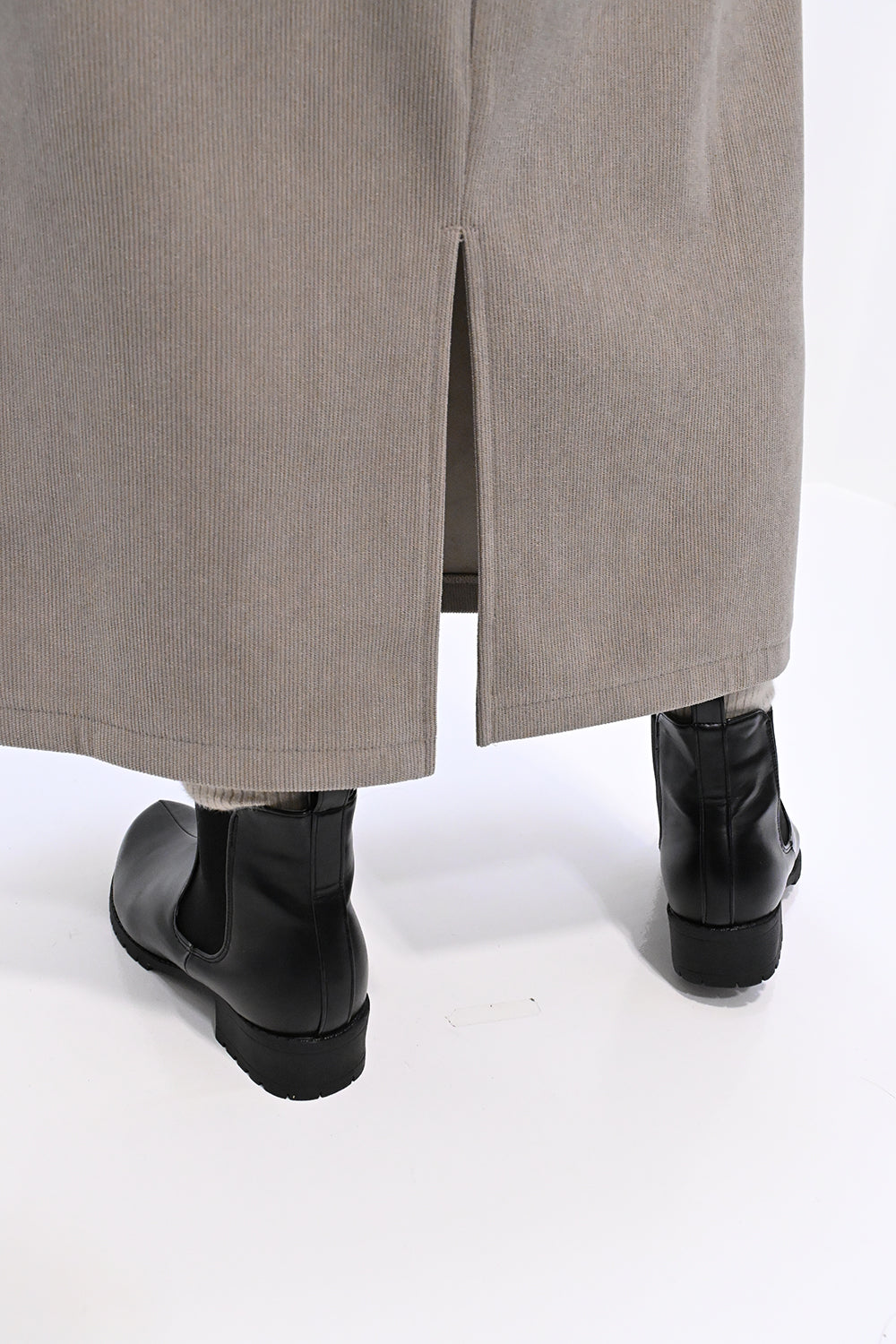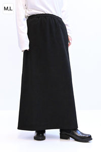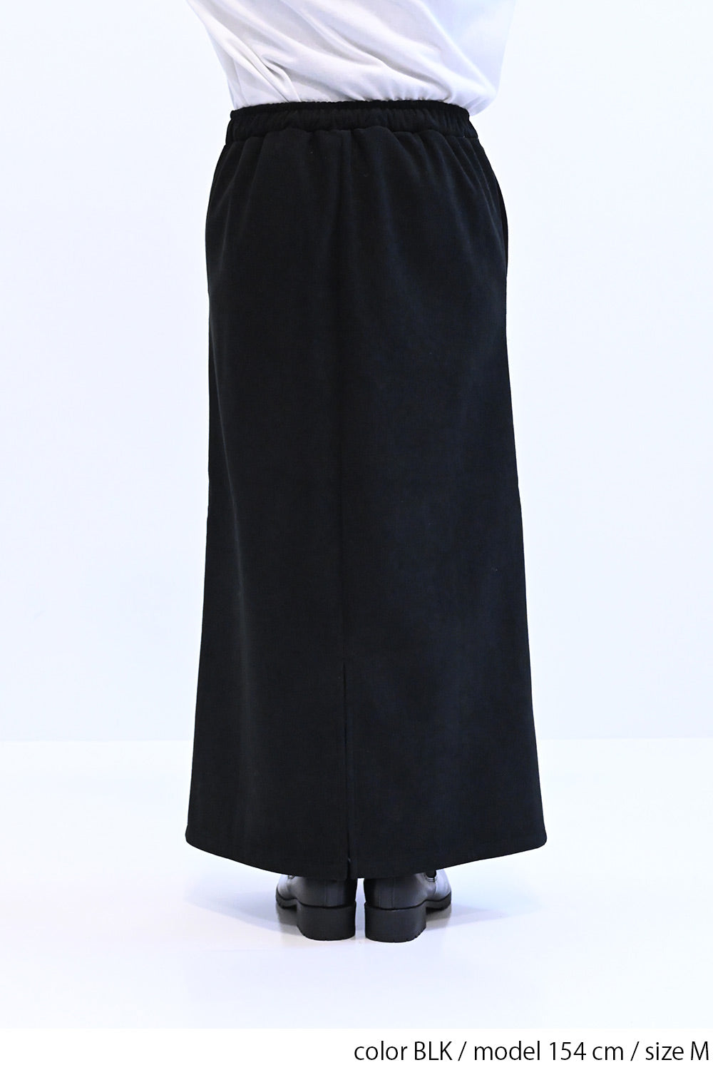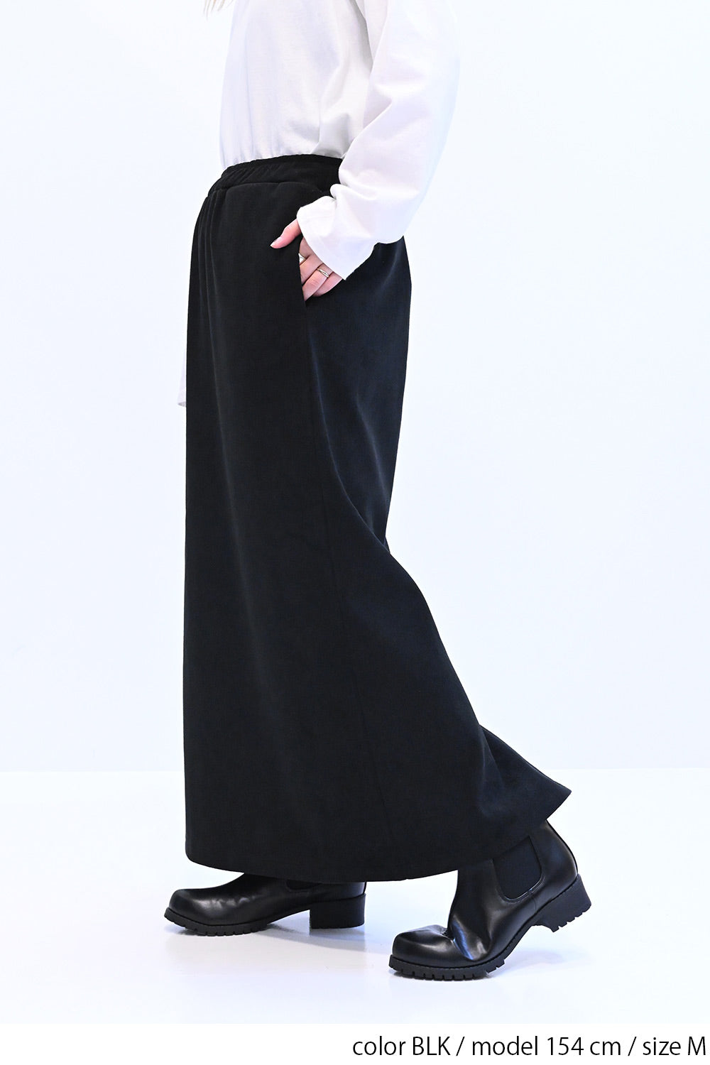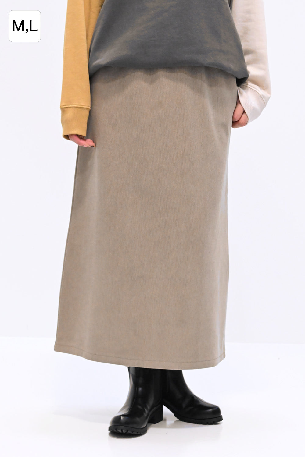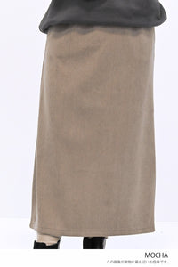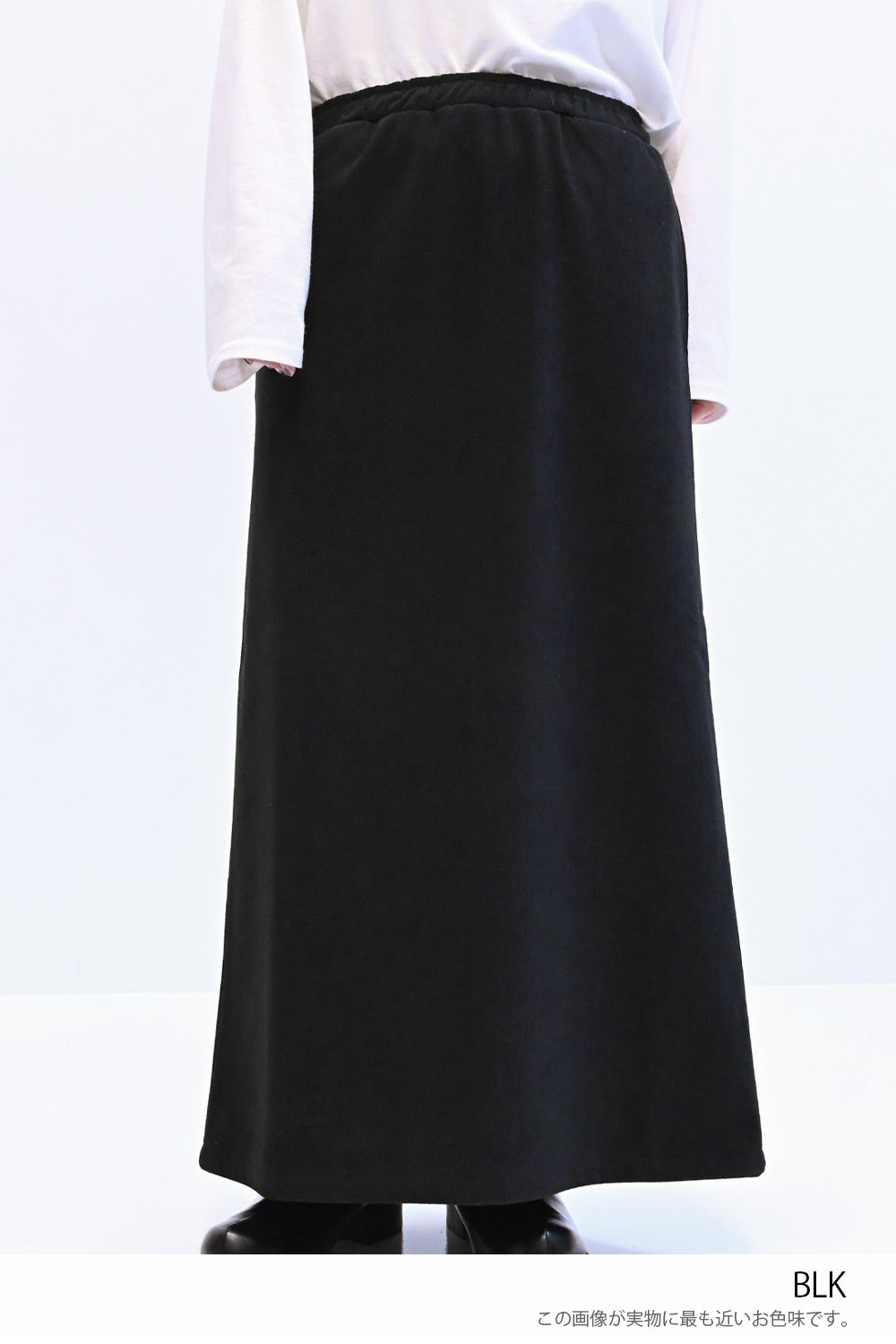 表面は細畝のコーデュロイ、裏面にはふんわりとしたシャギー素材を使用した、季節感たっぷりのロングスカート。