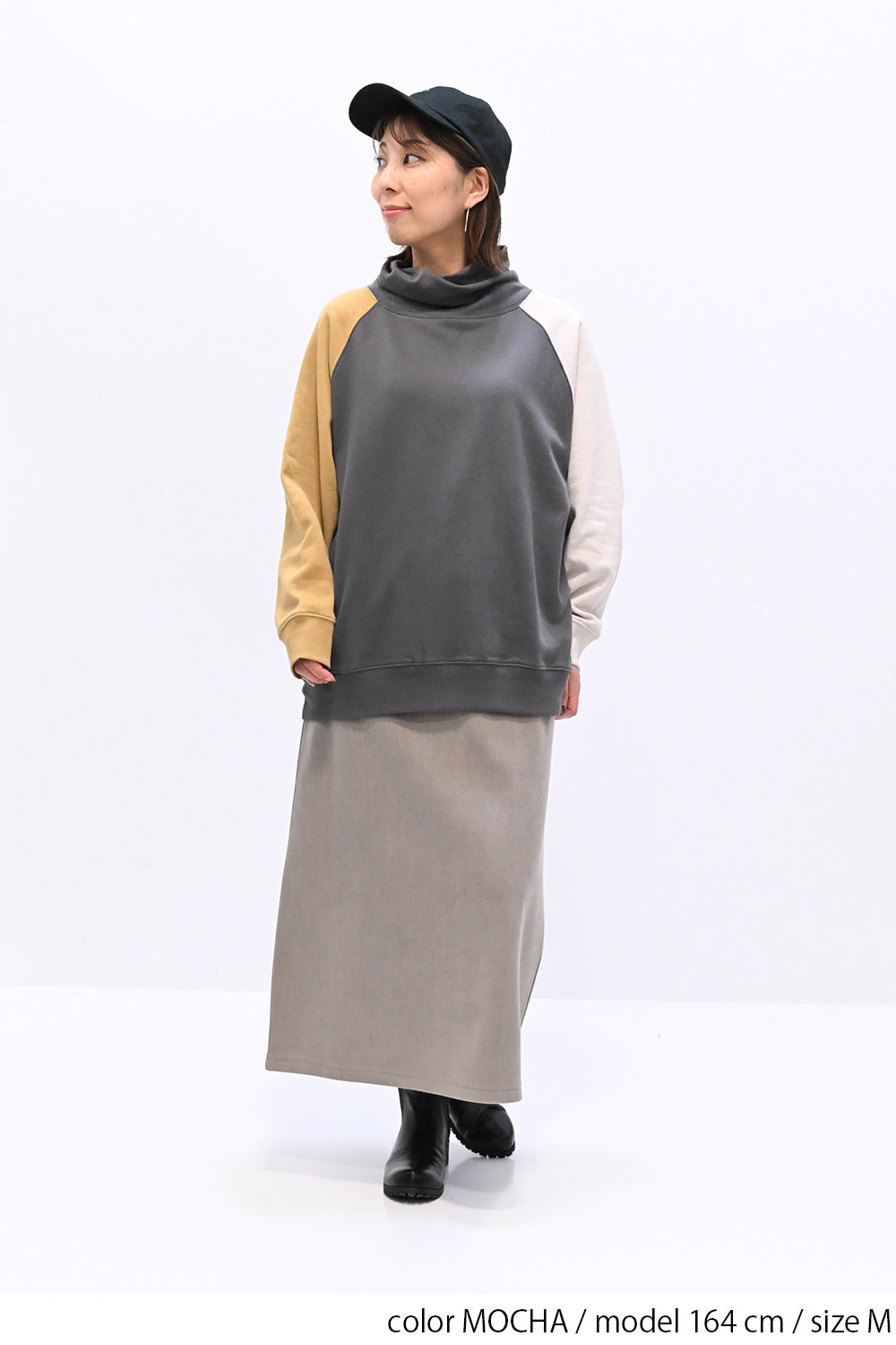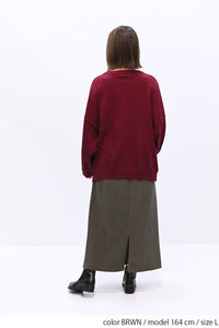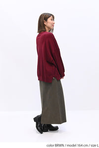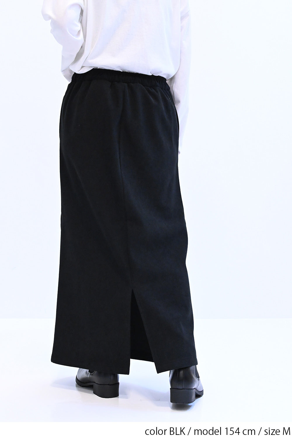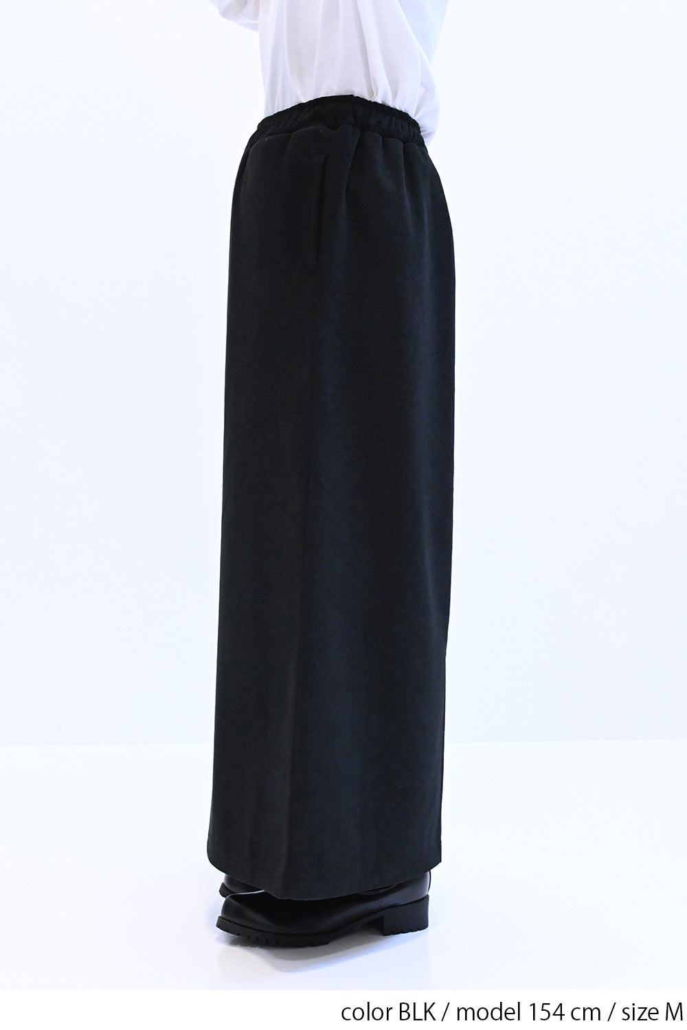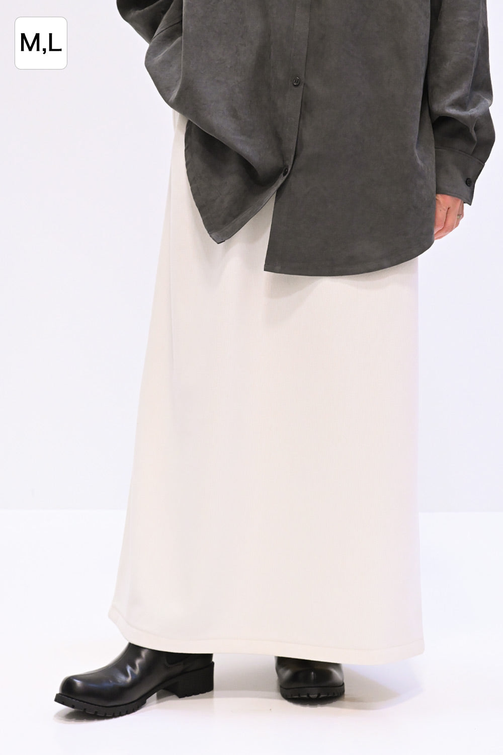 表面は細畝のコーデュロイ、裏面にはふんわりとしたシャギー素材を使用した、季節感たっぷりのロングスカート。