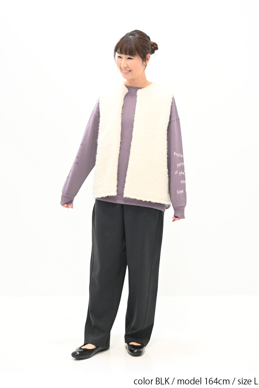 程よくカーブをかけたワイドシルエットが、体のラインを拾わずすっきり見せてくれます。