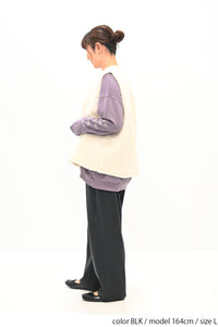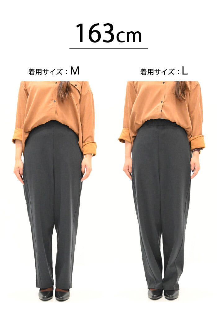 ウエストは後ろゴム仕様で、きれい見えとリラックス感のどちらも叶えるデザイン。