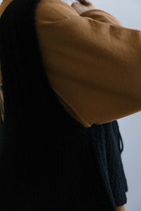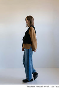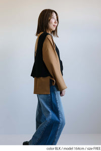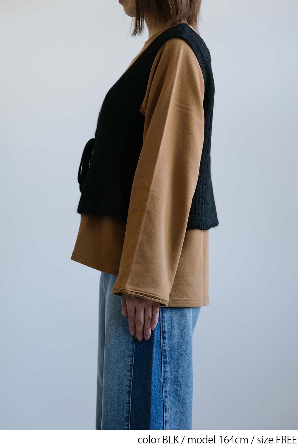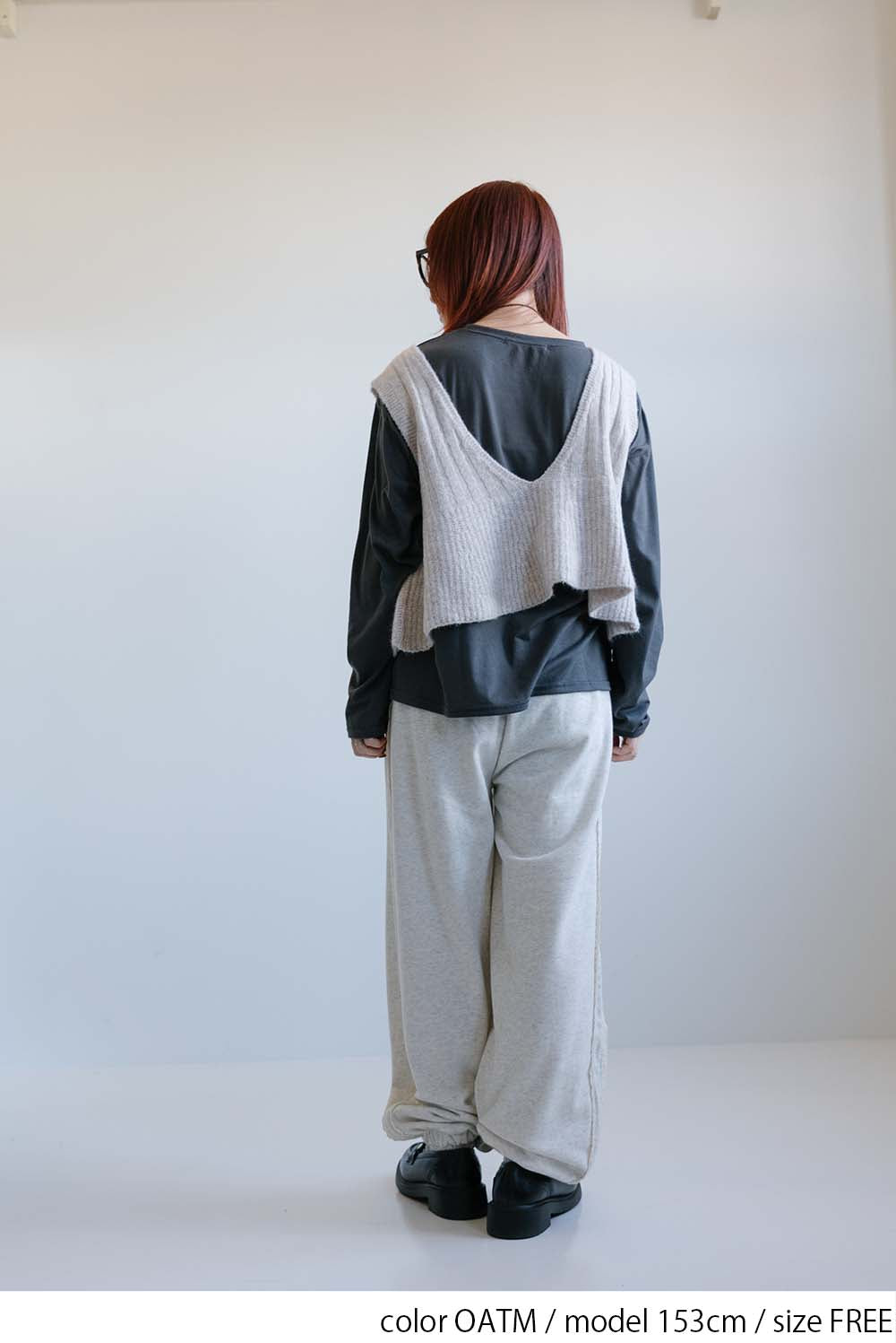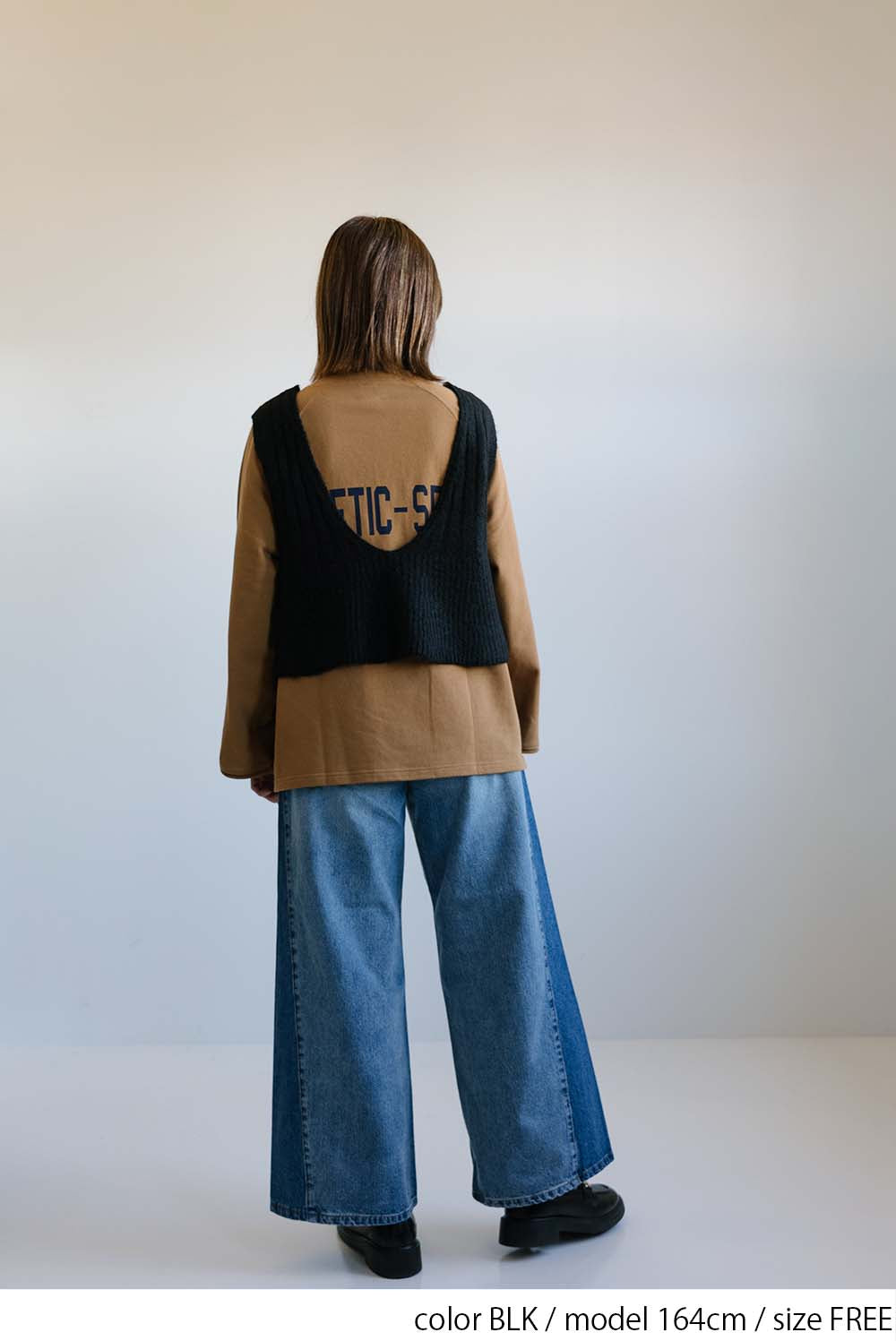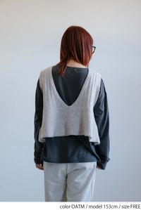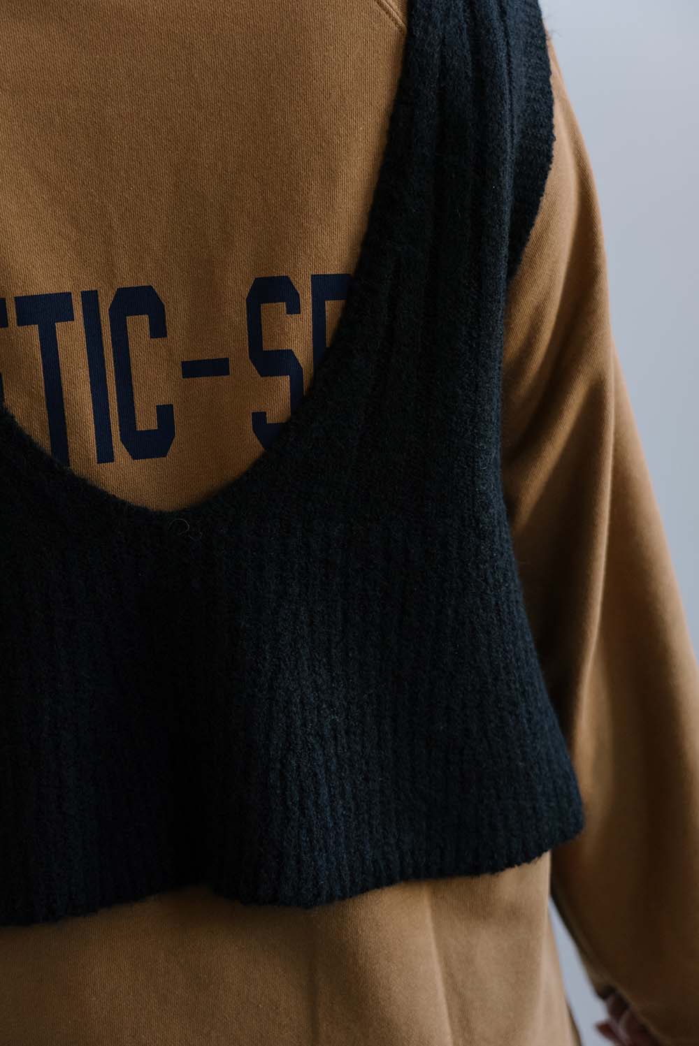 大きく開いた襟元とバックスタイルが抜け感をつくり、普段のコーディネートに重ねるだけでぐっとオシャレ度をアップしてくれます。