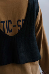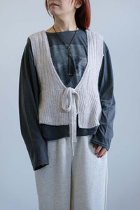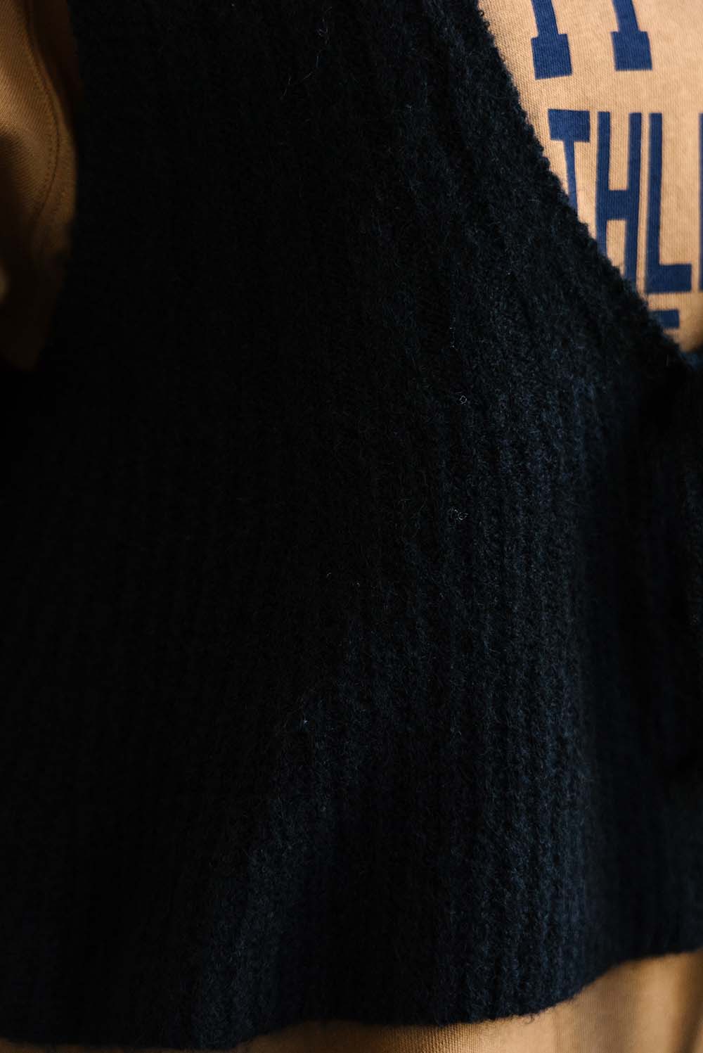 ショート丈シルエットとフレアデザインが、スタイリングに旬のニュアンスを添えてくれるニットビスチェ。