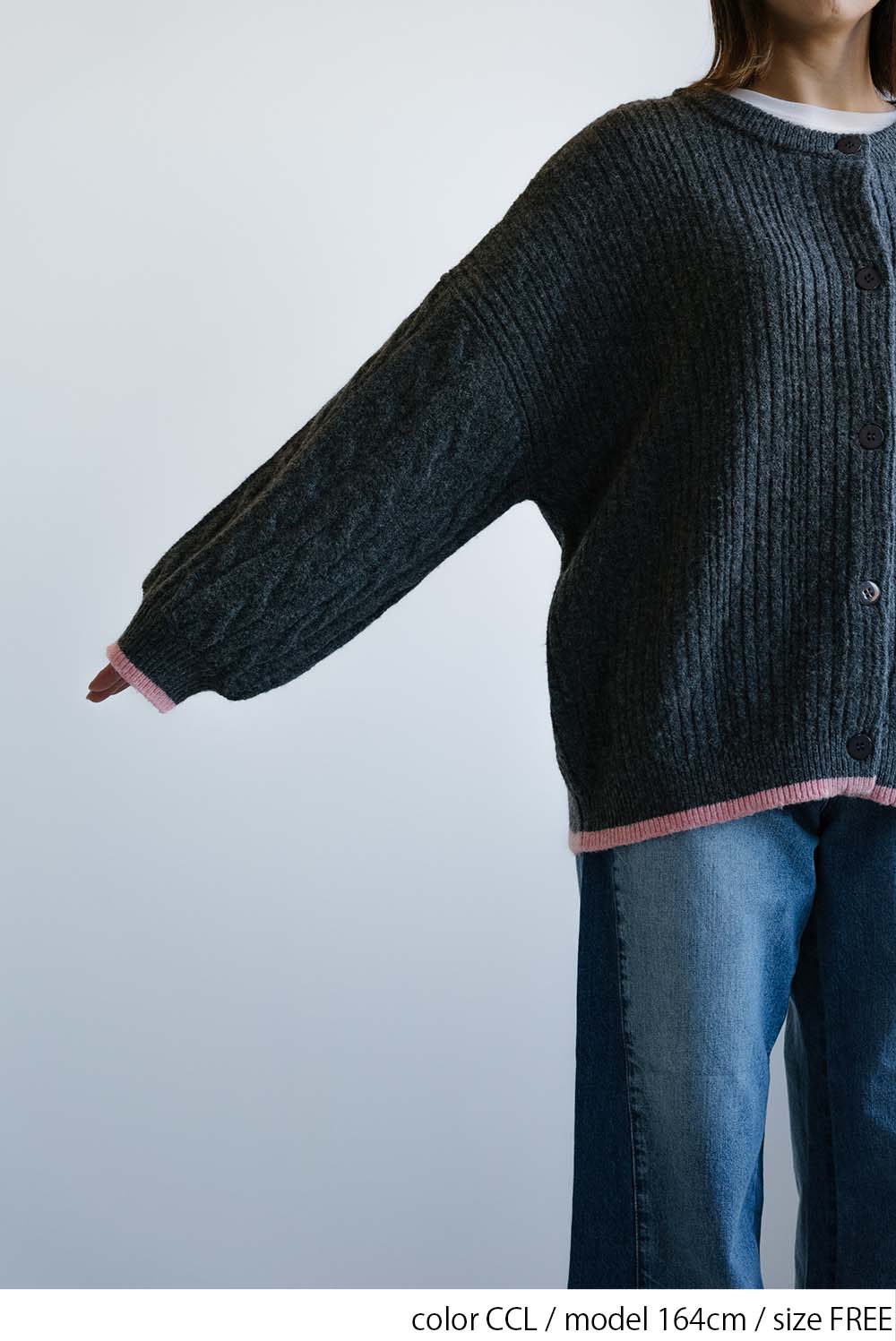 袖口と裾には配色のワンポイントをあしらい、ナチュラルな雰囲気の中にも遊び心をプラス。