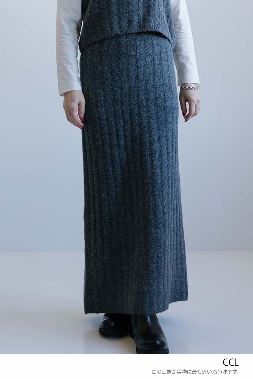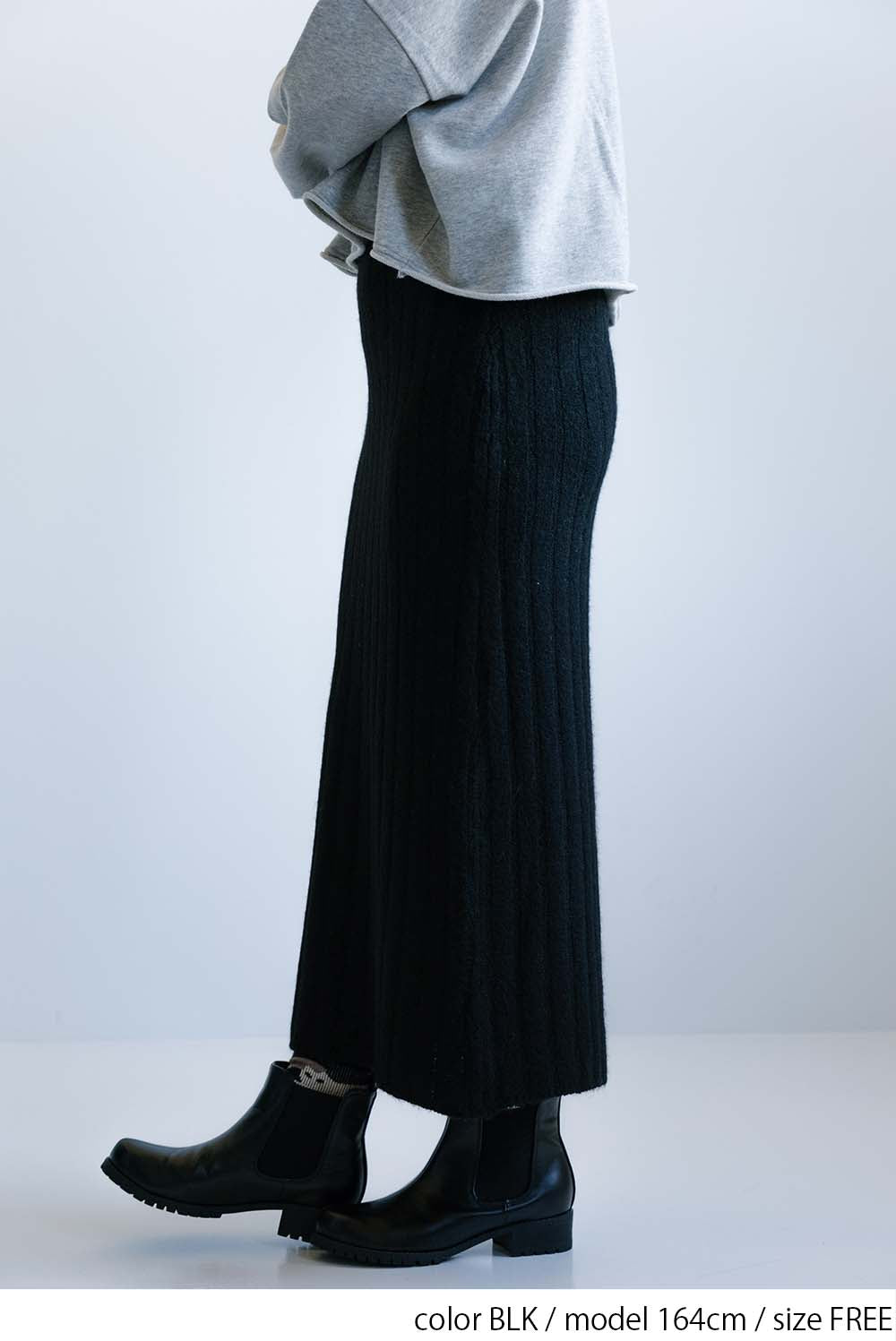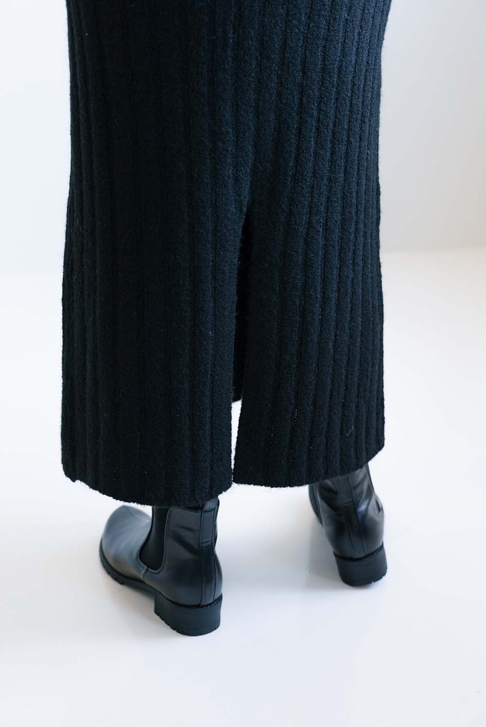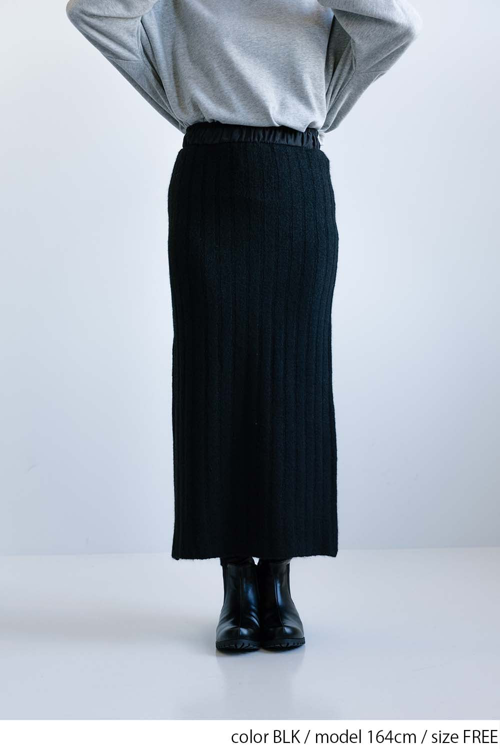 リブ編みの縦ラインが美しく、すっきりとしたシルエットを叶えるナロースカート。