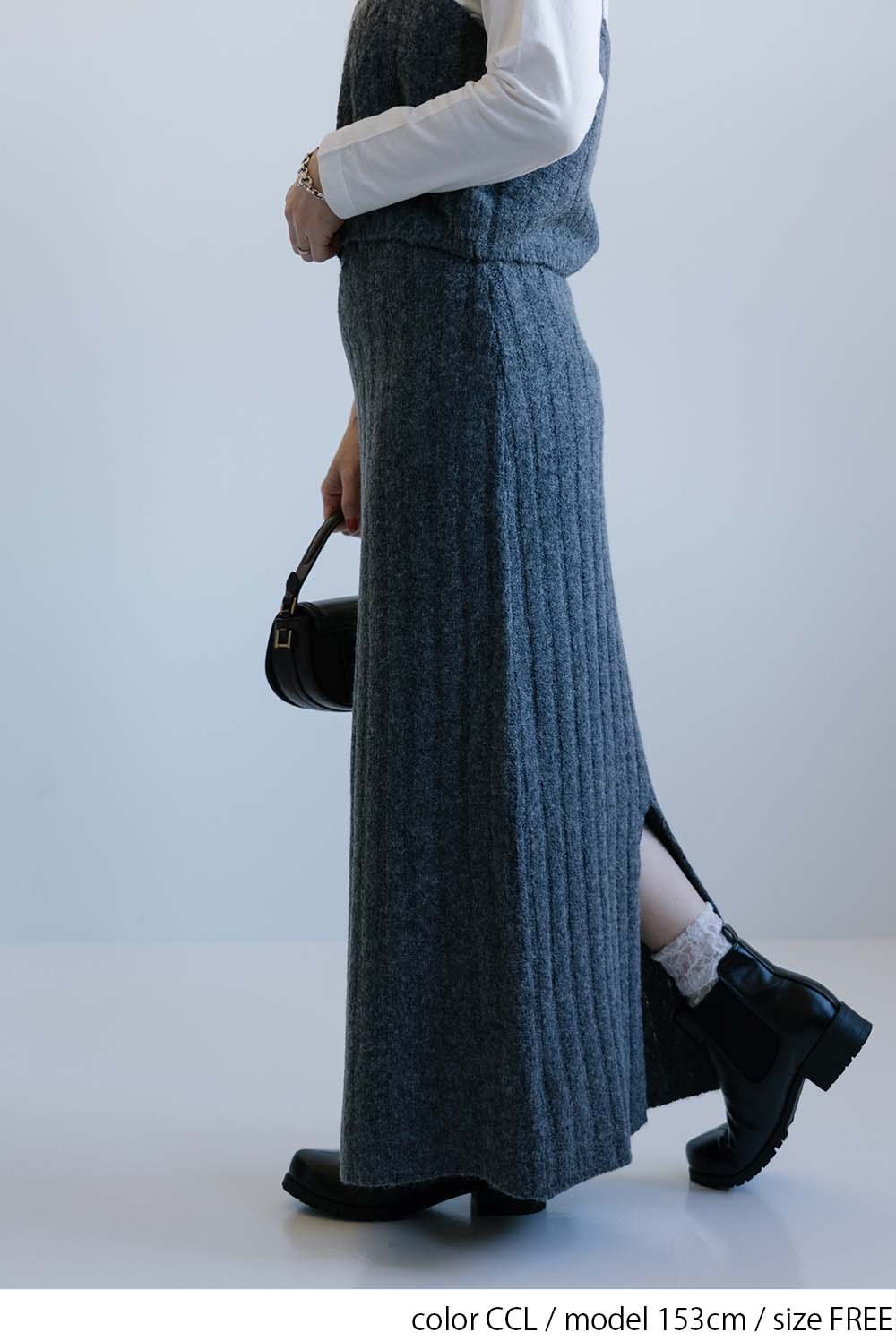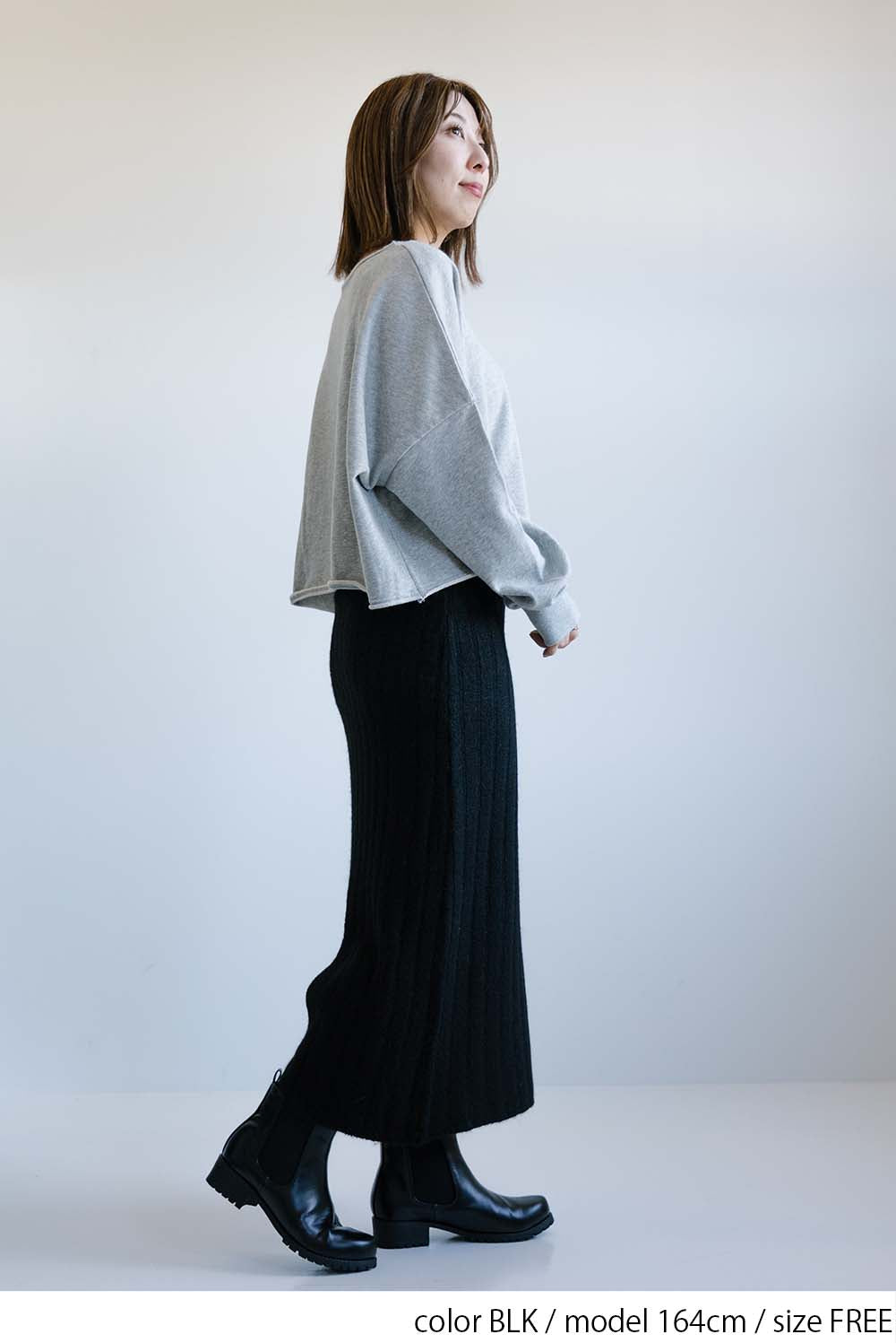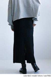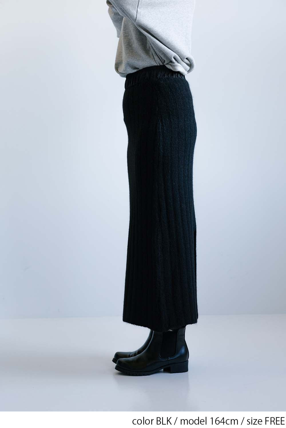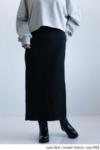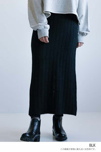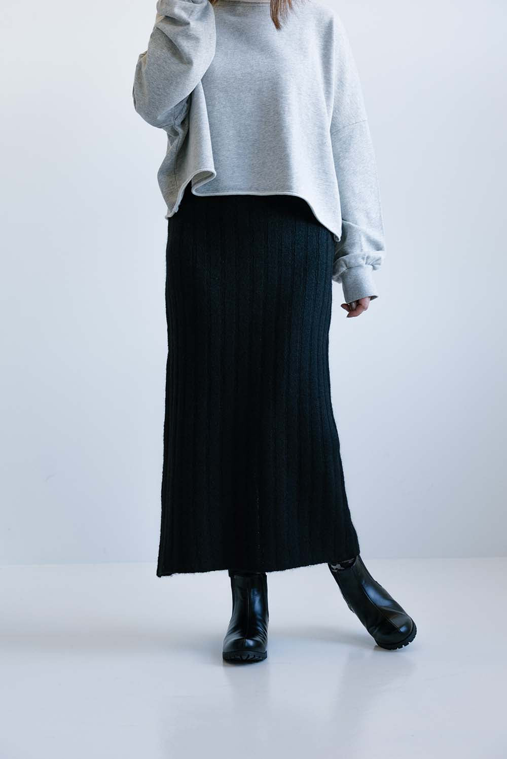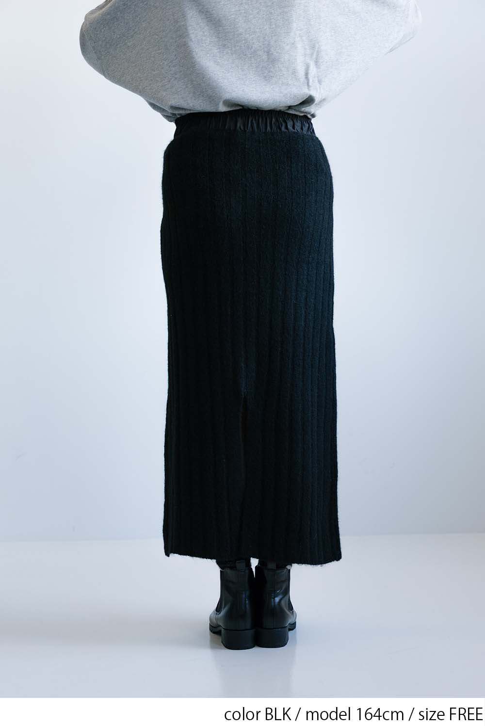 リブ編みの縦ラインが美しく、すっきりとしたシルエットを叶えるナロースカート。