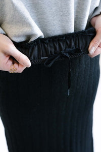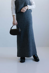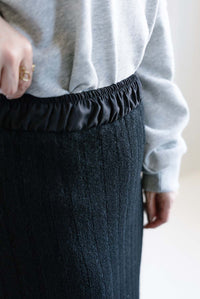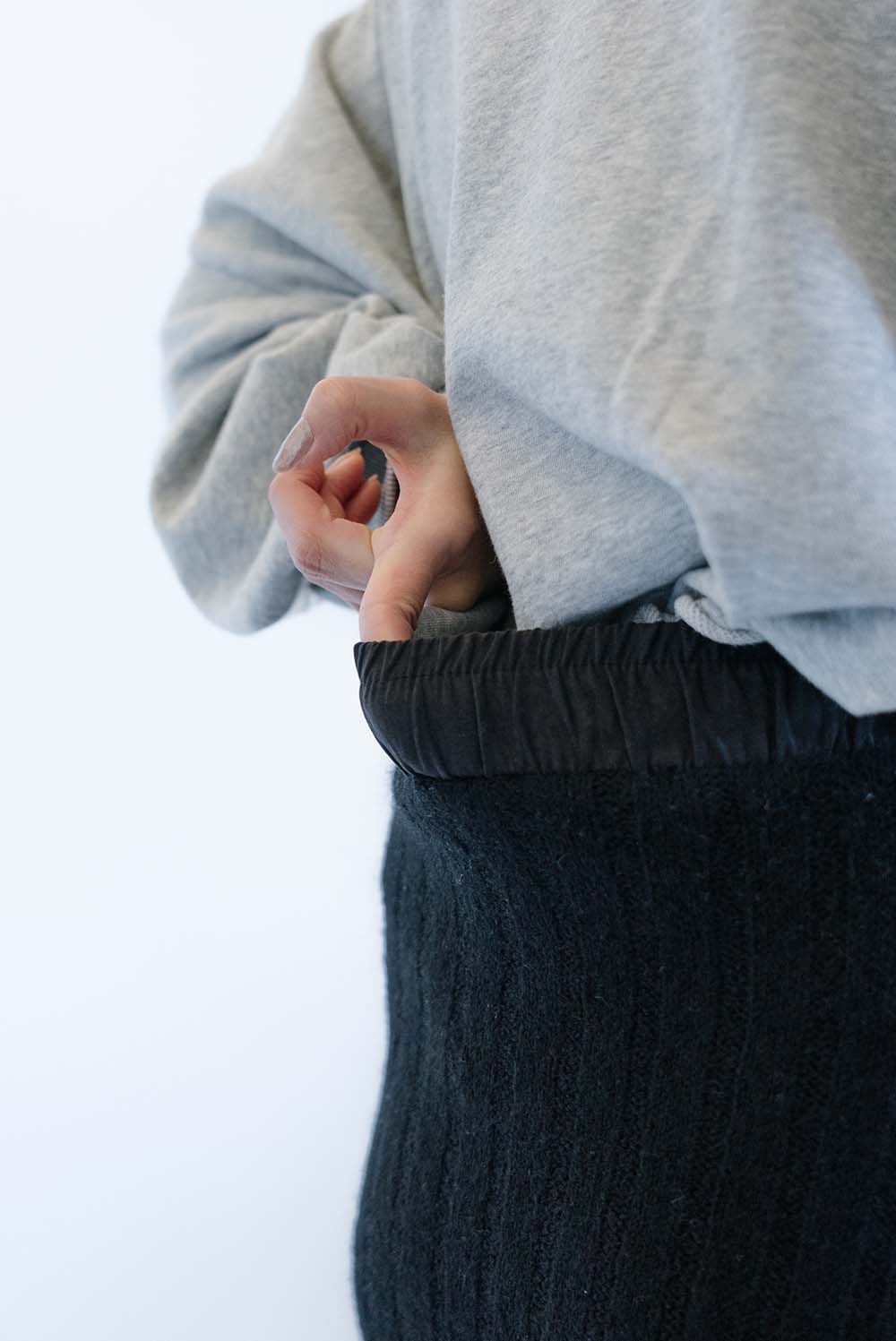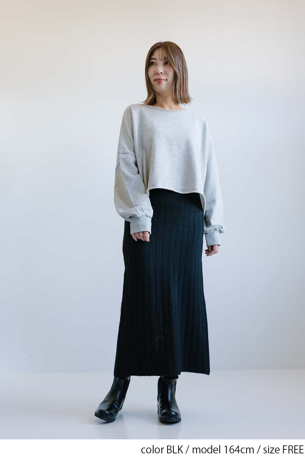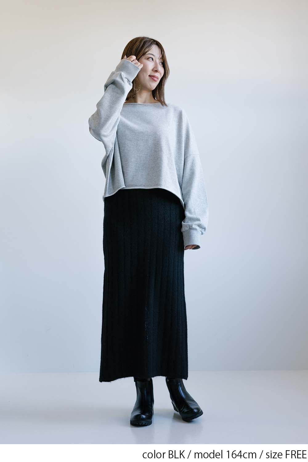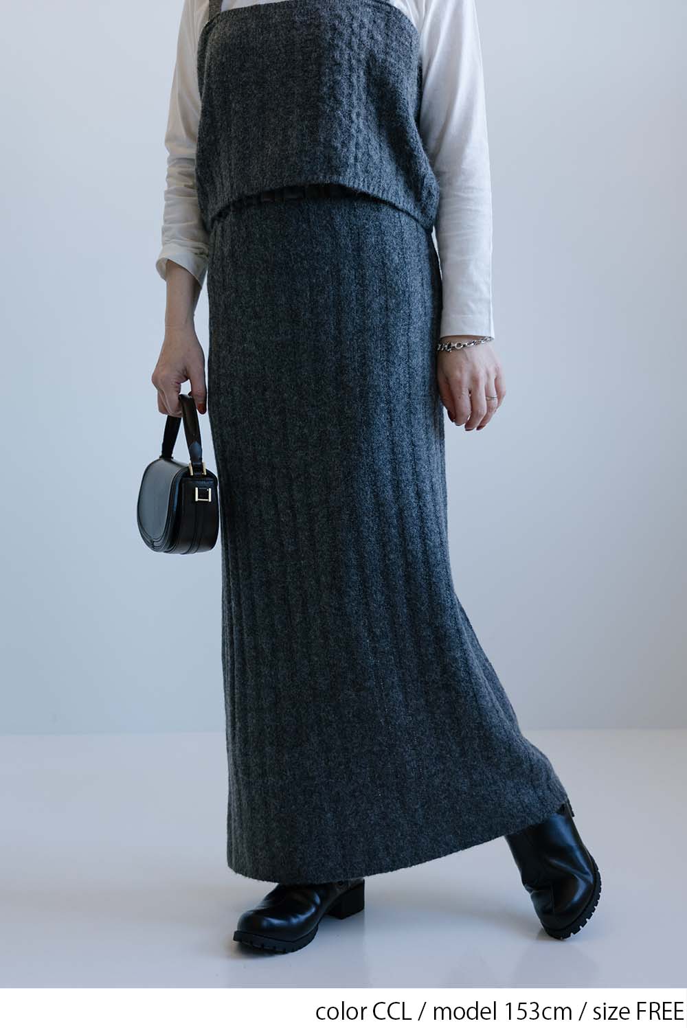 リブ編みの縦ラインが美しく、すっきりとしたシルエットを叶えるナロースカート。