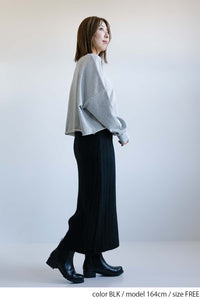 バックスリットと柔らかなニット素材で、履き心地がよく動きやすい一枚です。