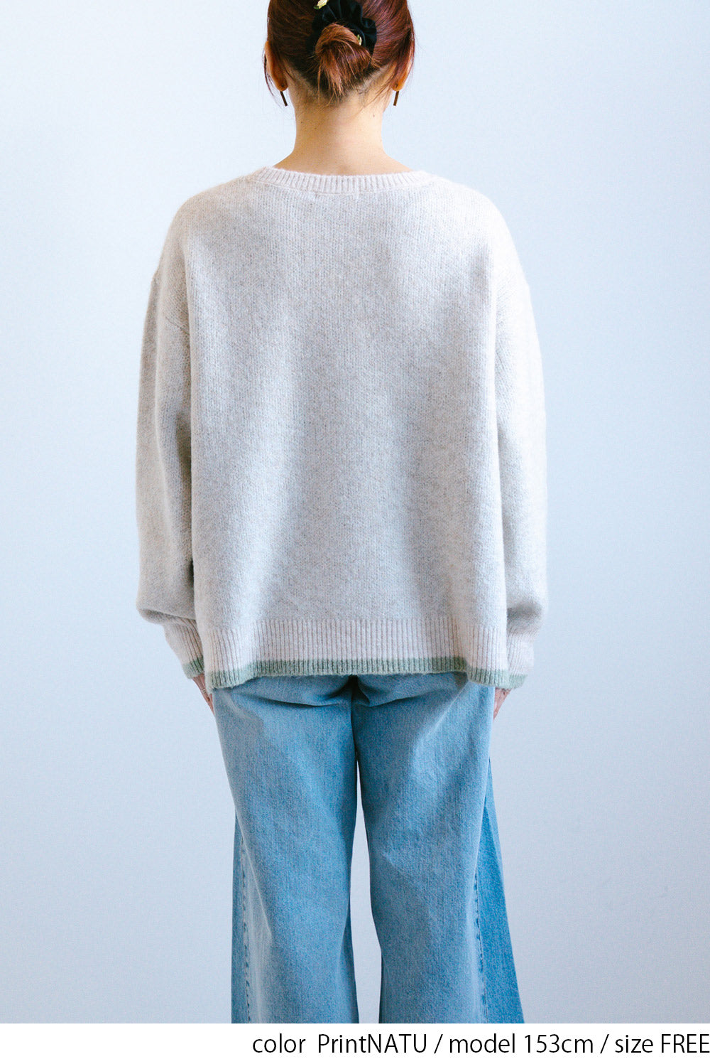 ジャガード編み特有の裏糸が見える風合いがポイントで、温かみのある表情に仕上げました。