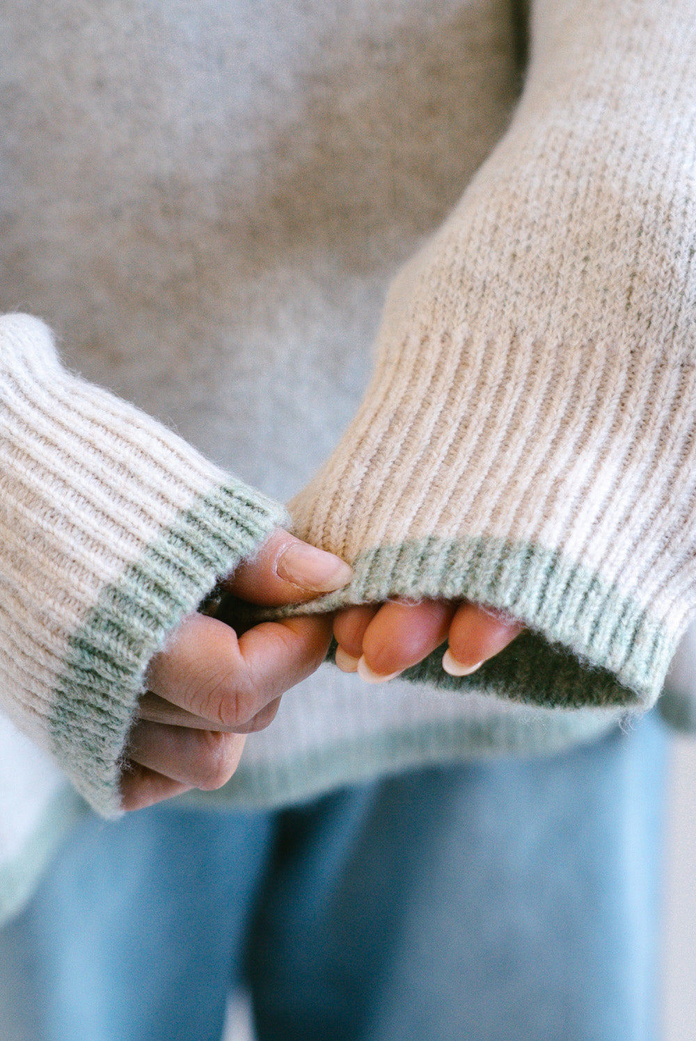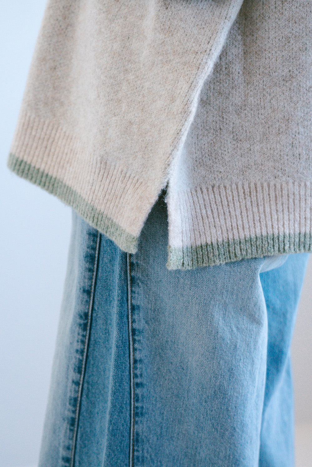袖口と裾に施した配色ラインがさりげないアクセントになってくれます。