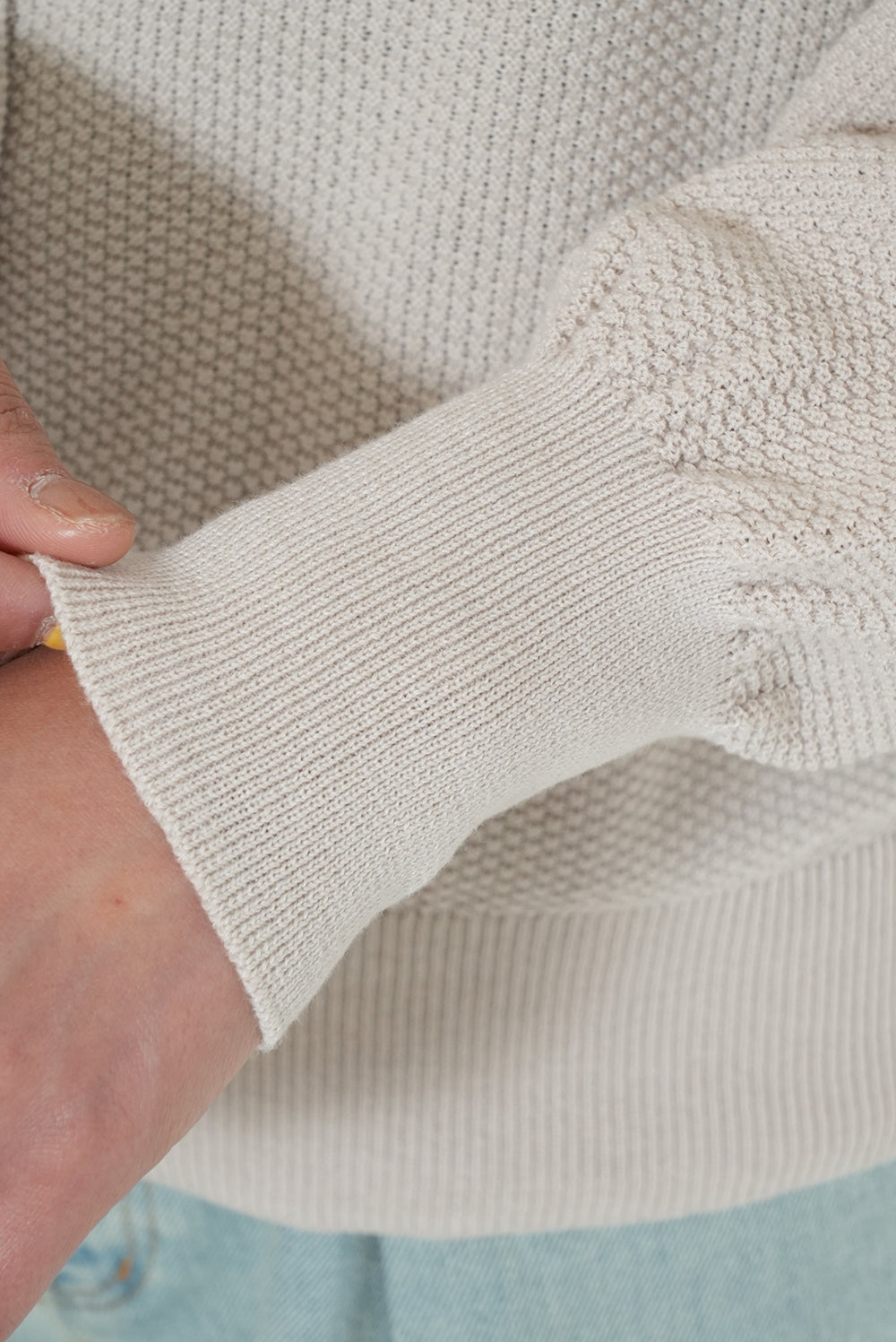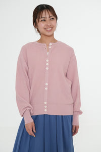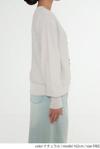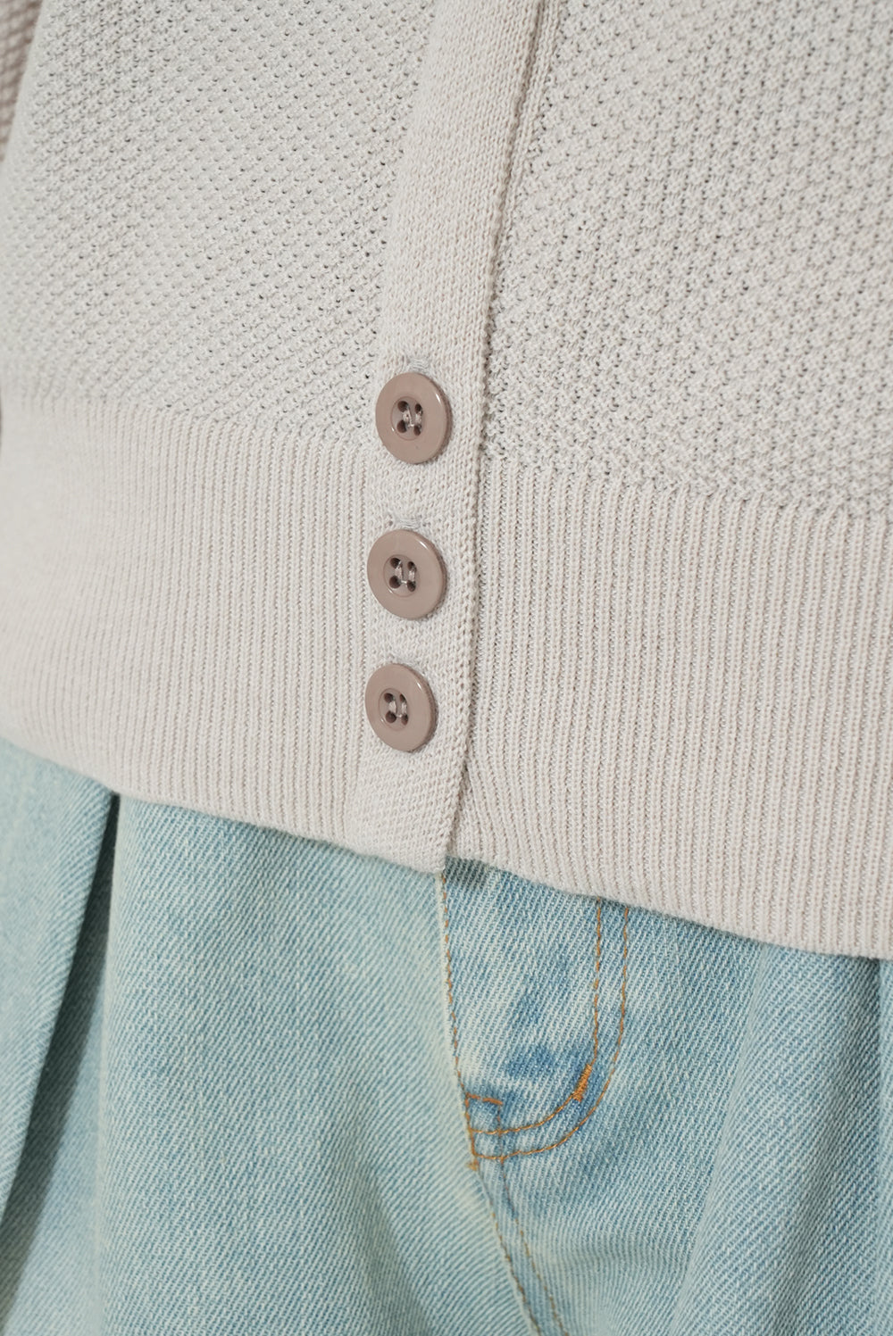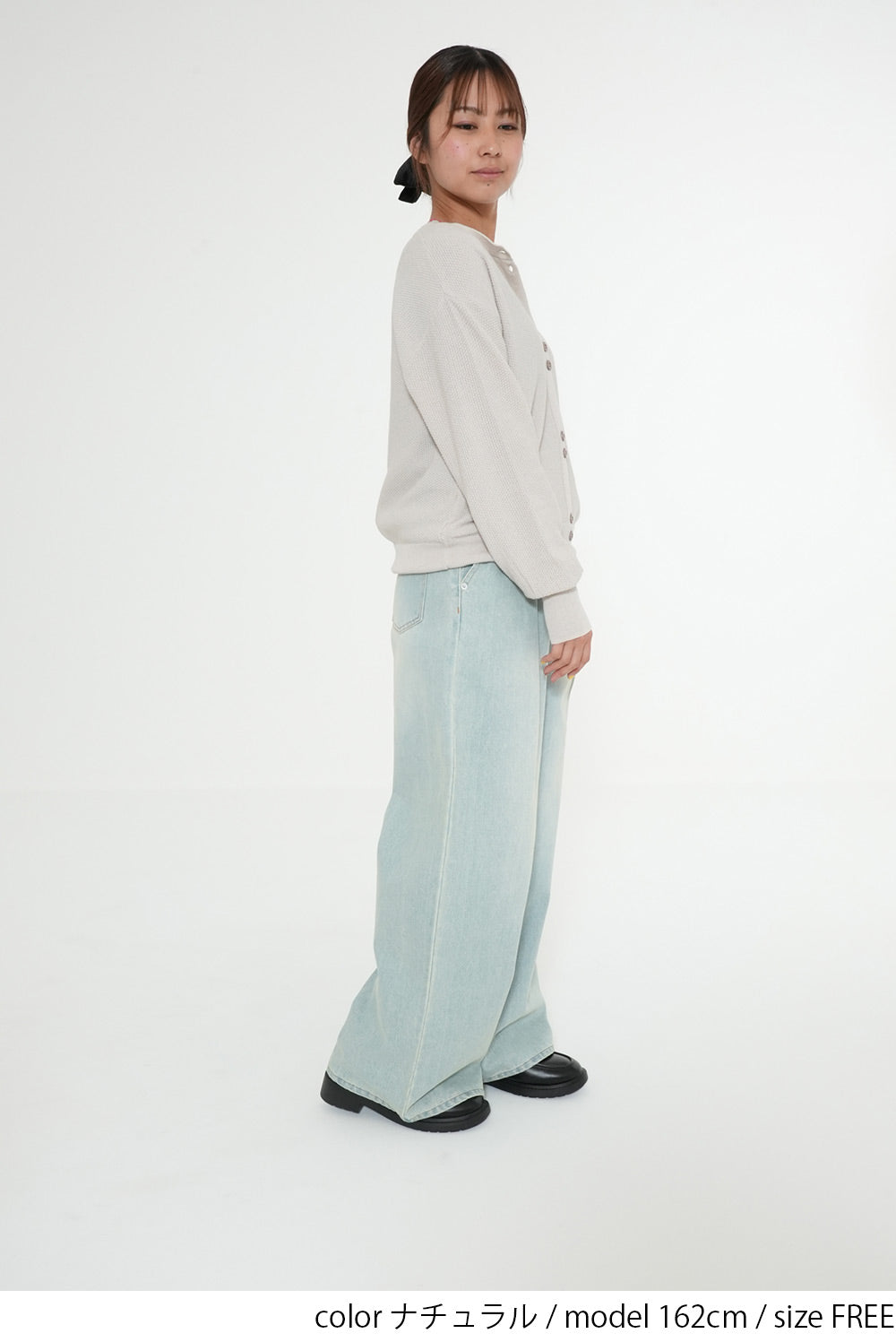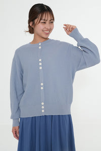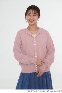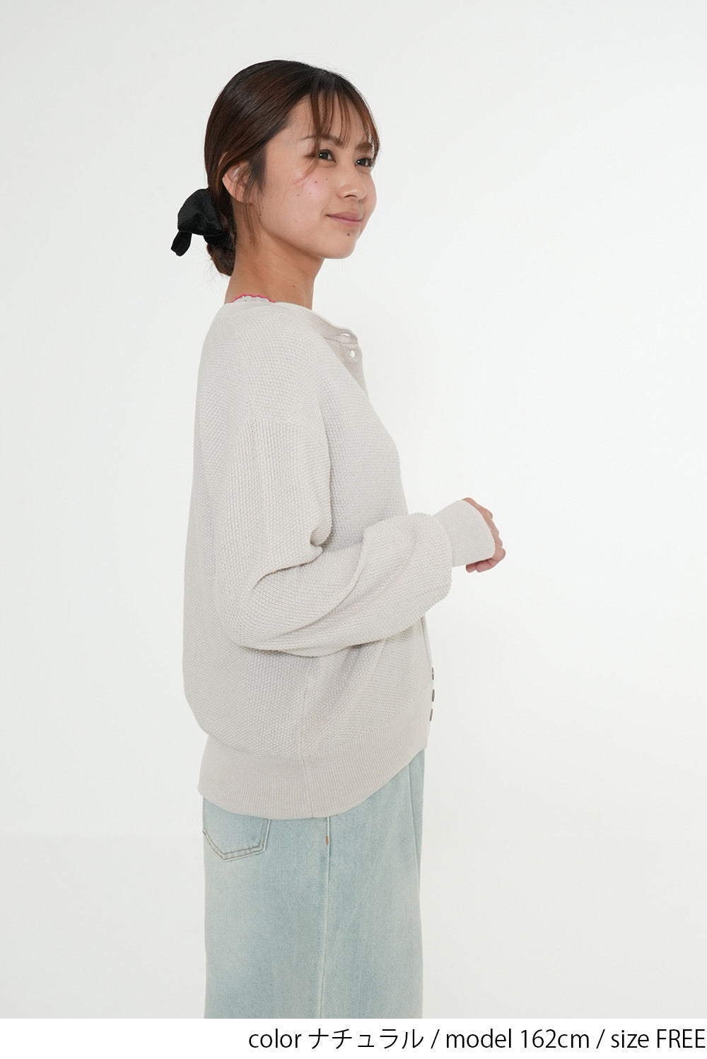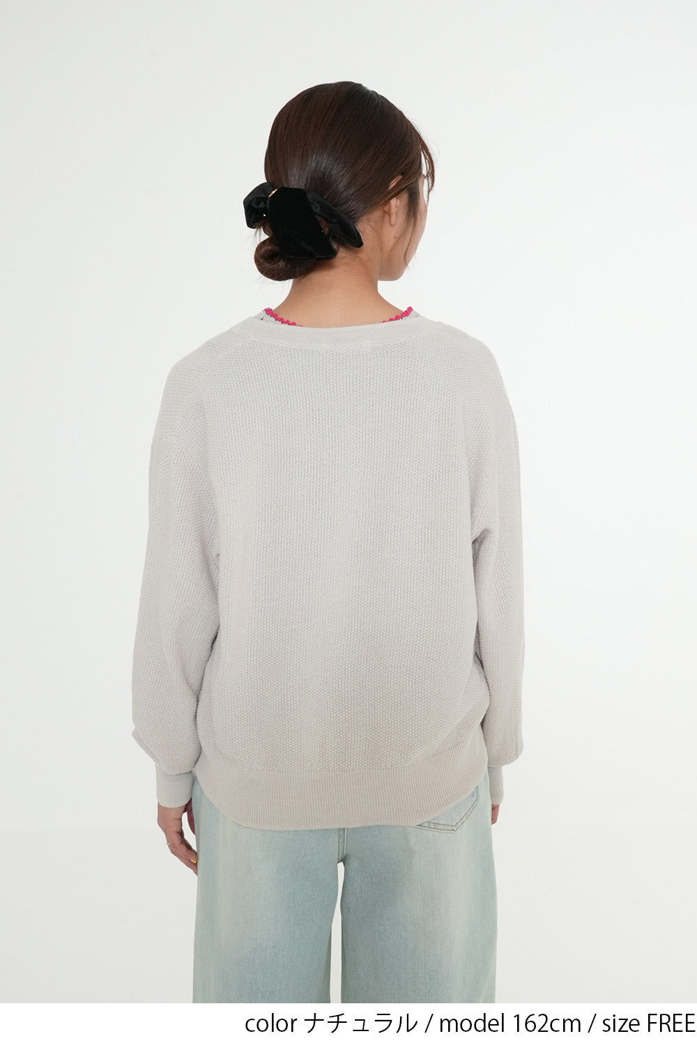 凹凸のあるカノコ編みで、表情豊かに仕上げたクルーネックカーディガン。