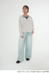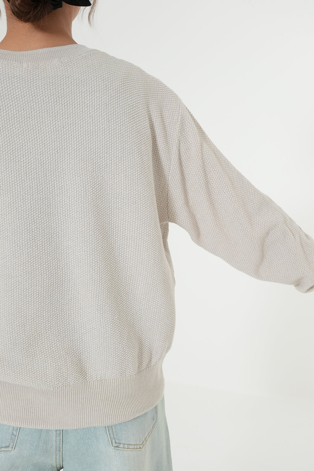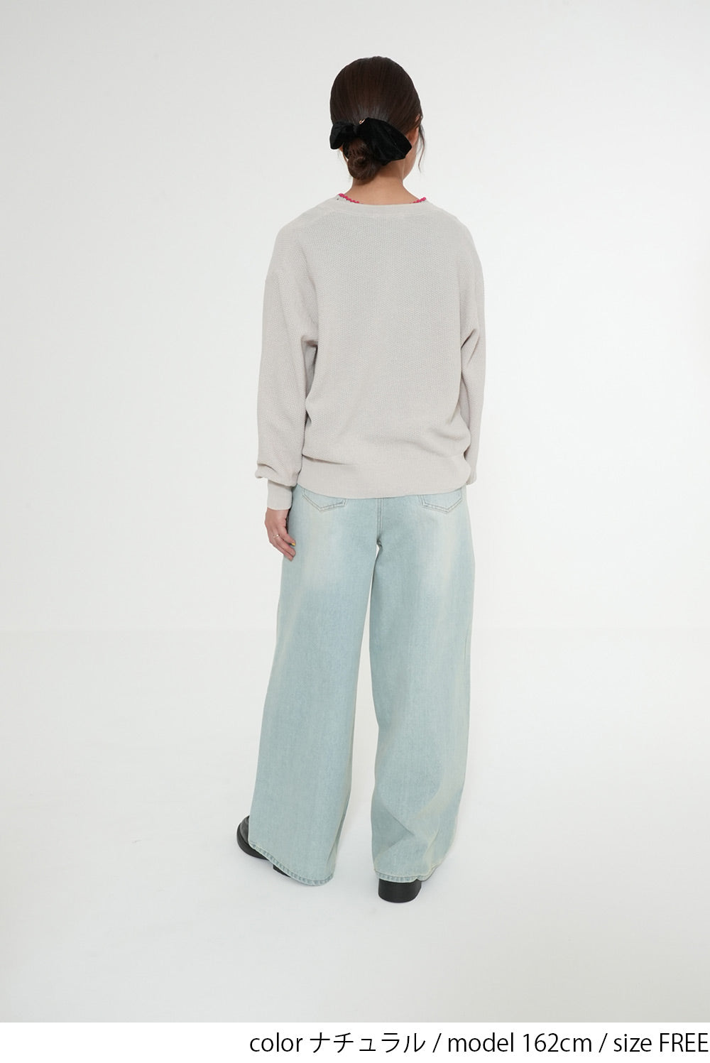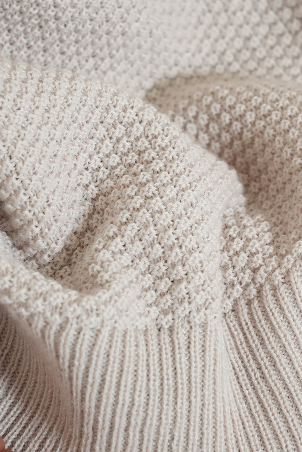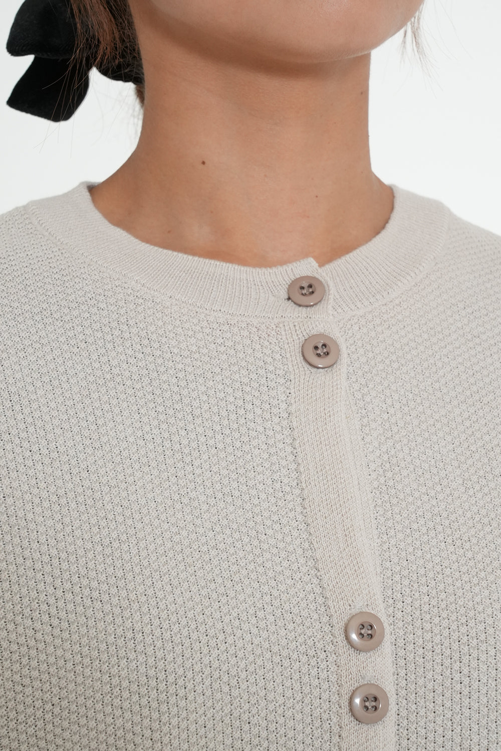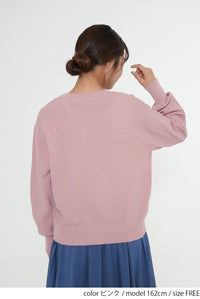 凹凸のあるカノコ編みで、表情豊かに仕上げたクルーネックカーディガン。